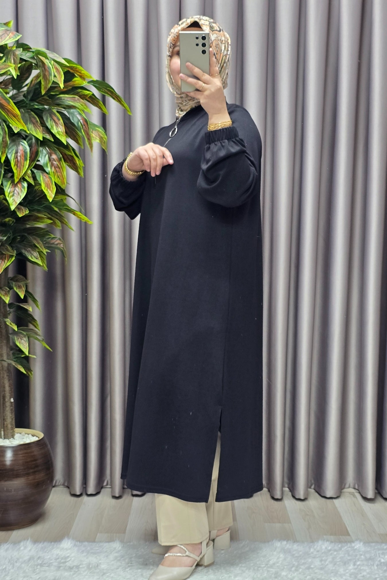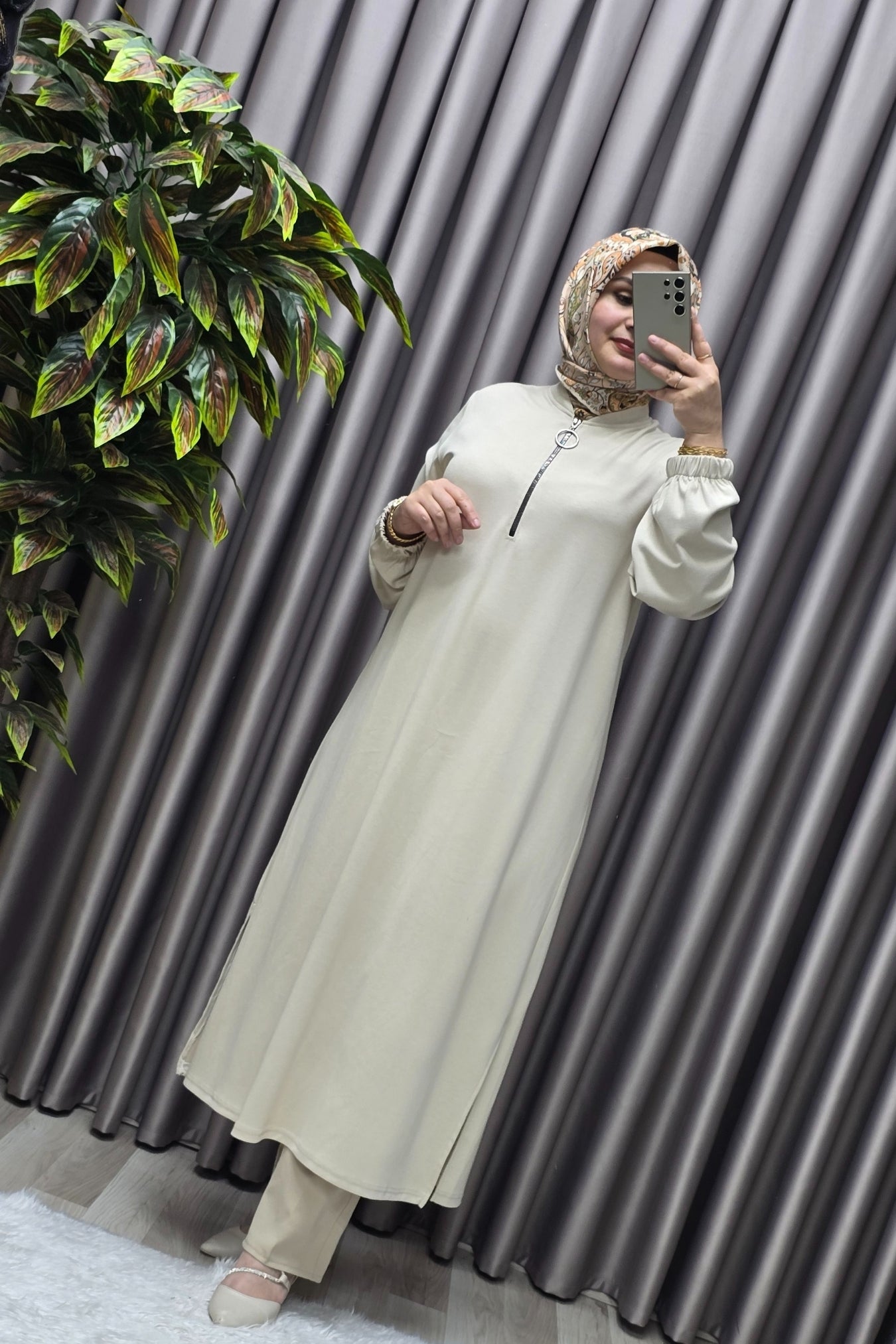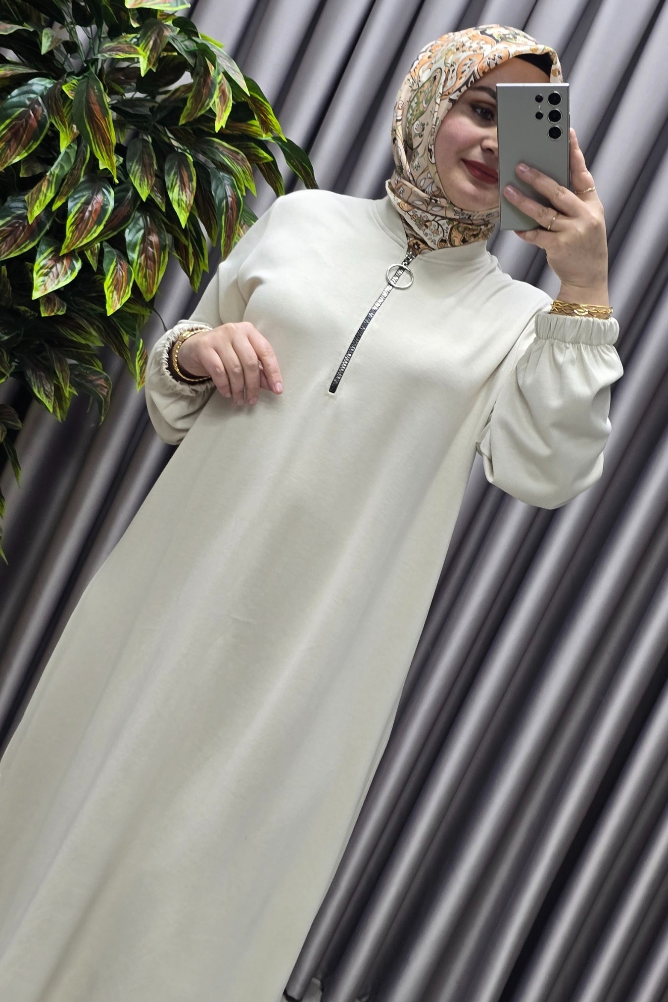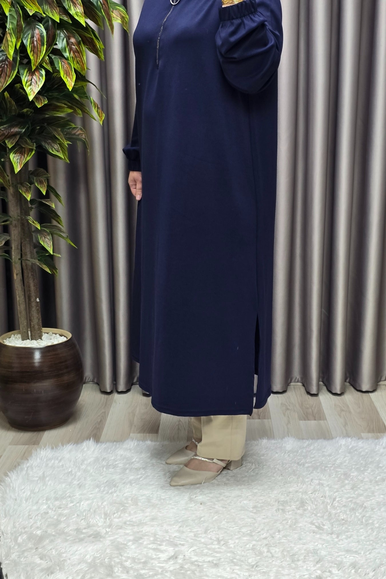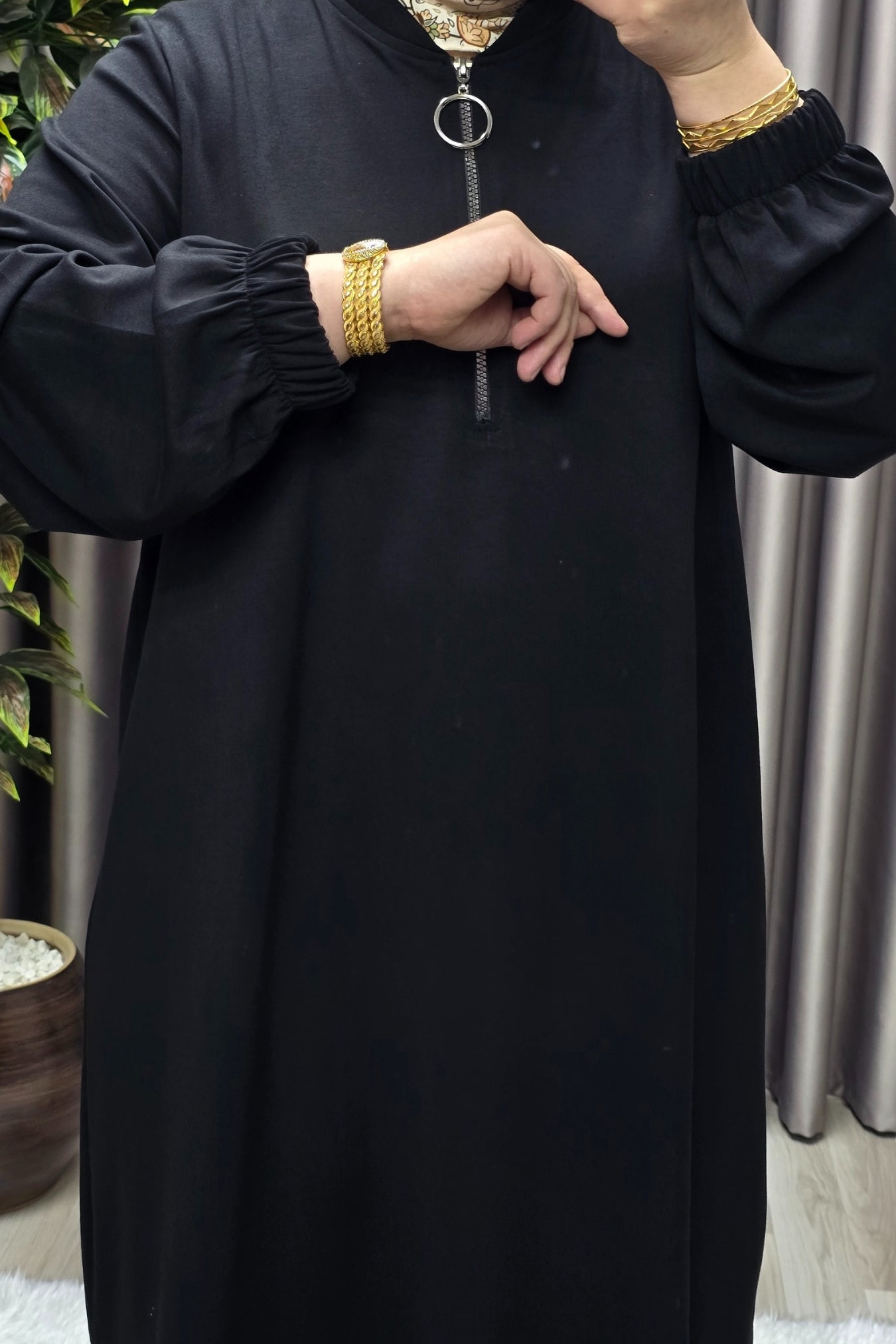 Kadın Tesettür Giyim Büyük Beden Fermuarlı Jumbo Uzun Tunik