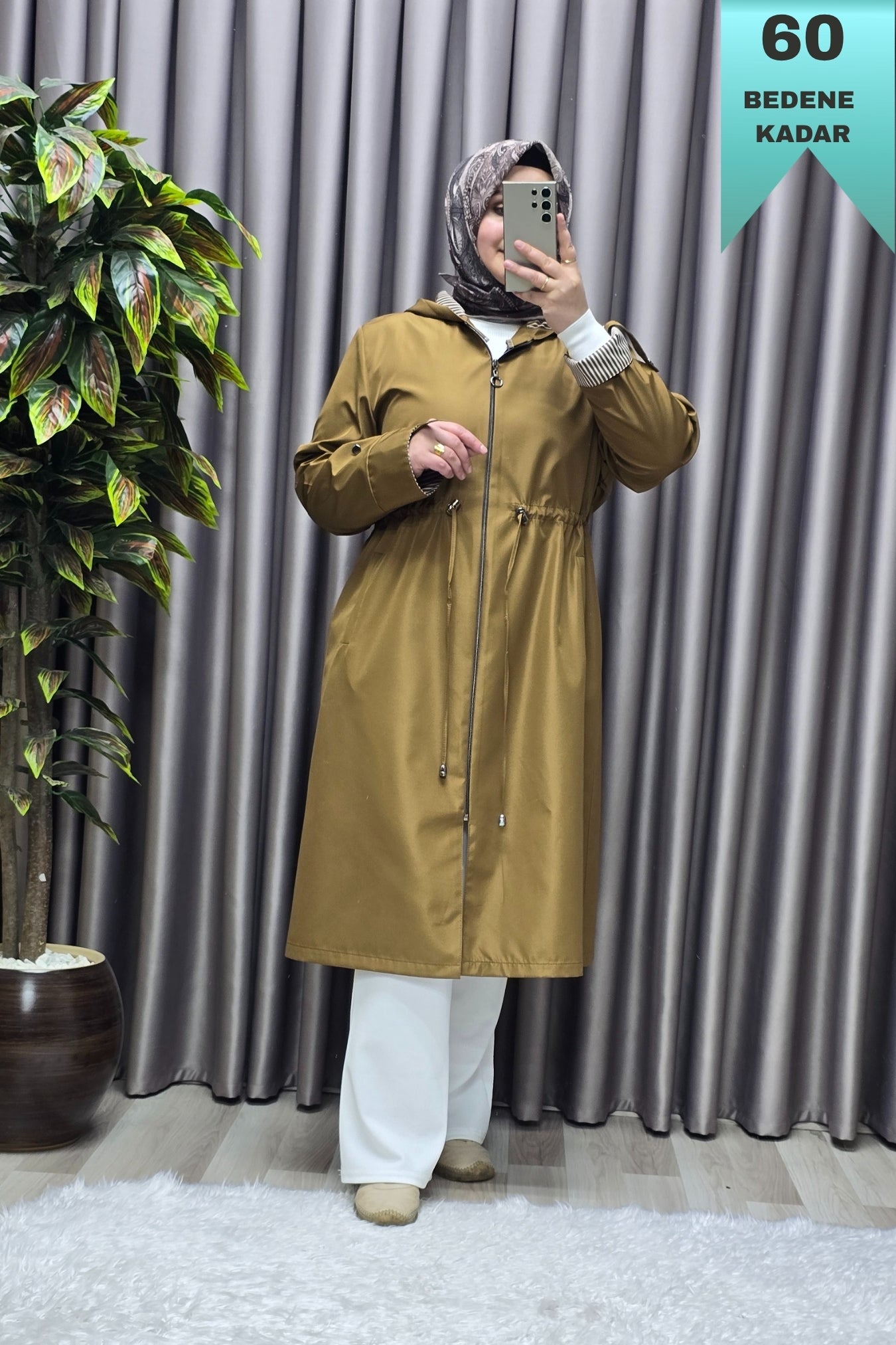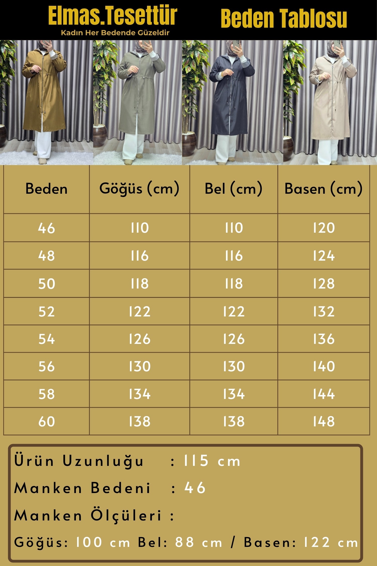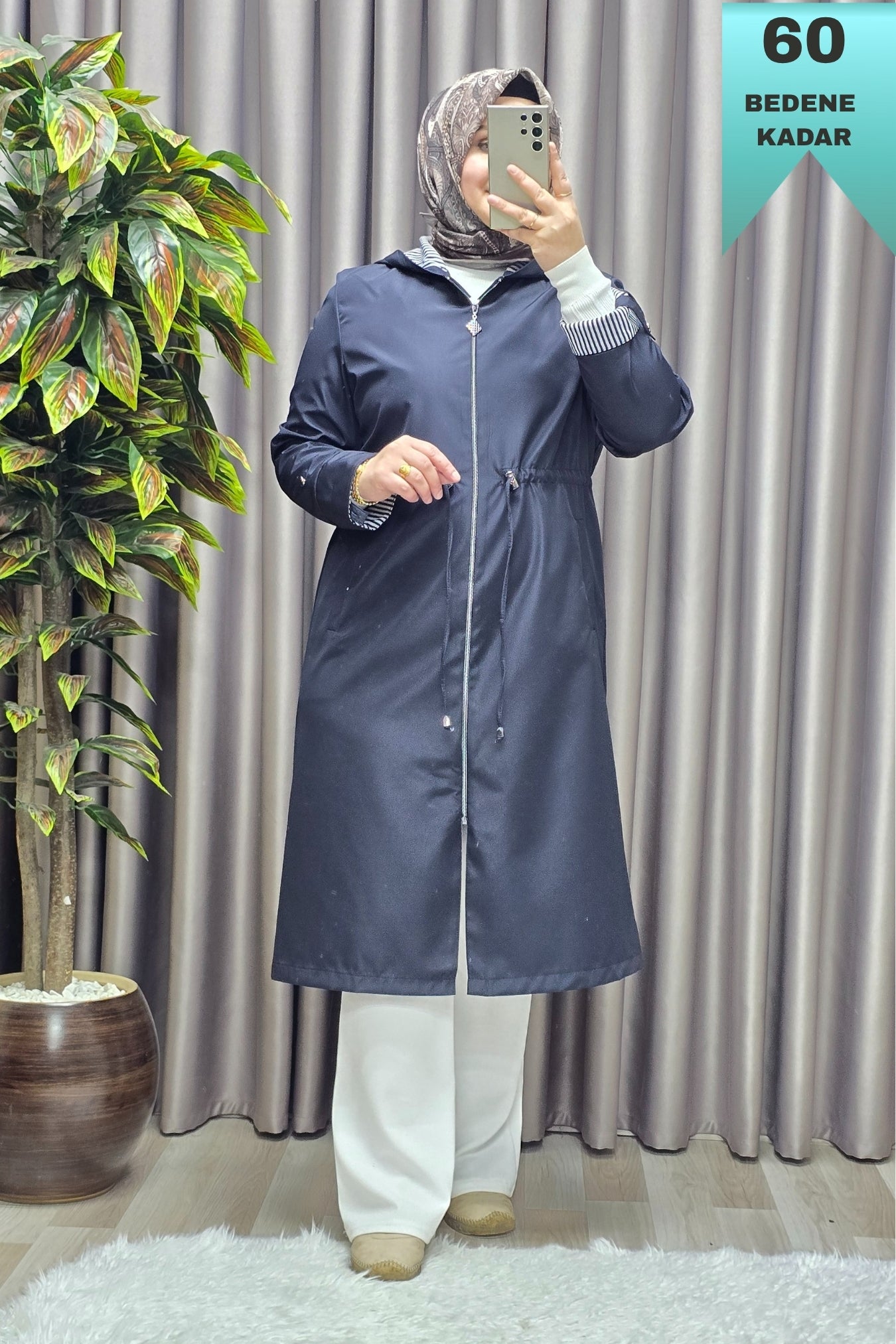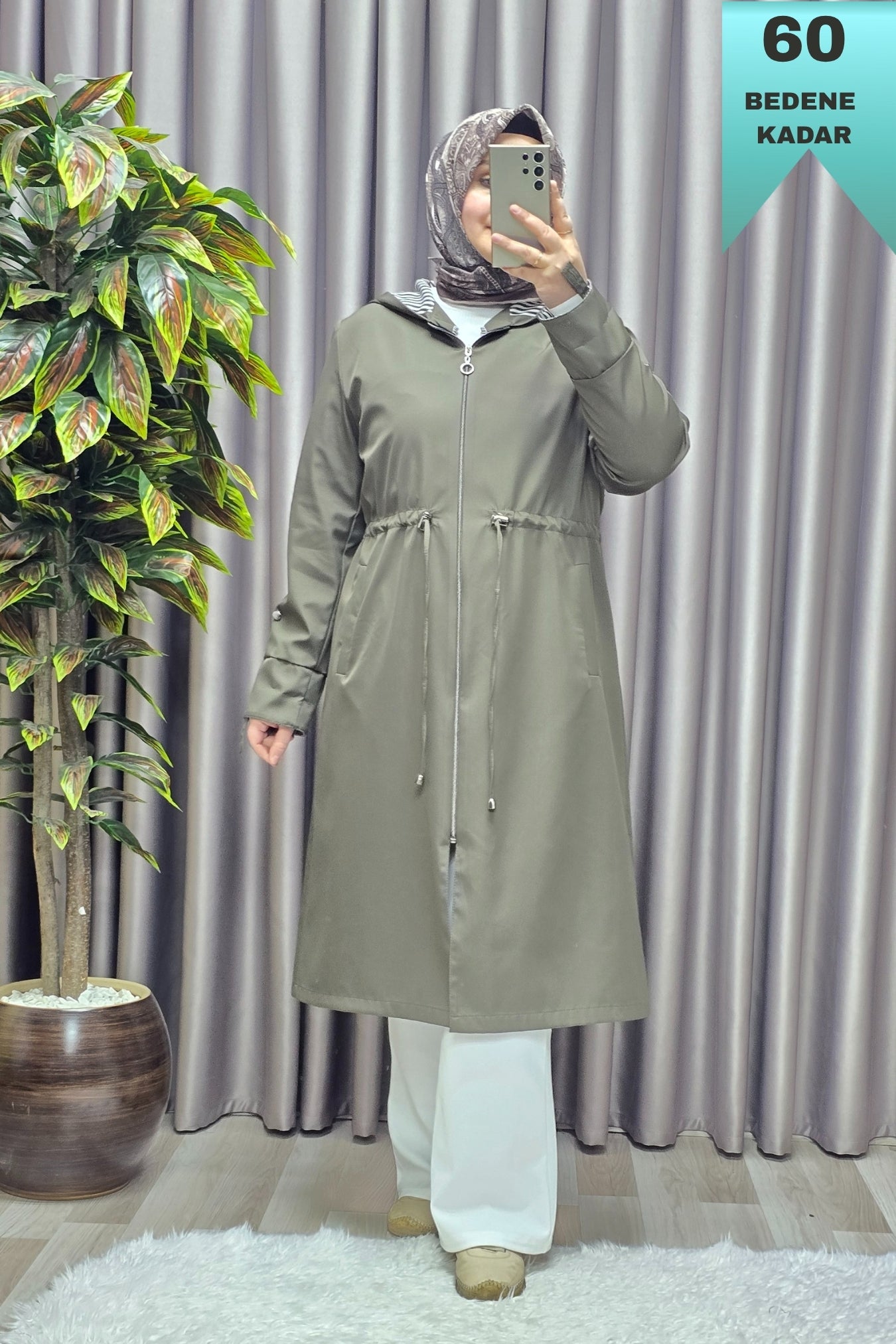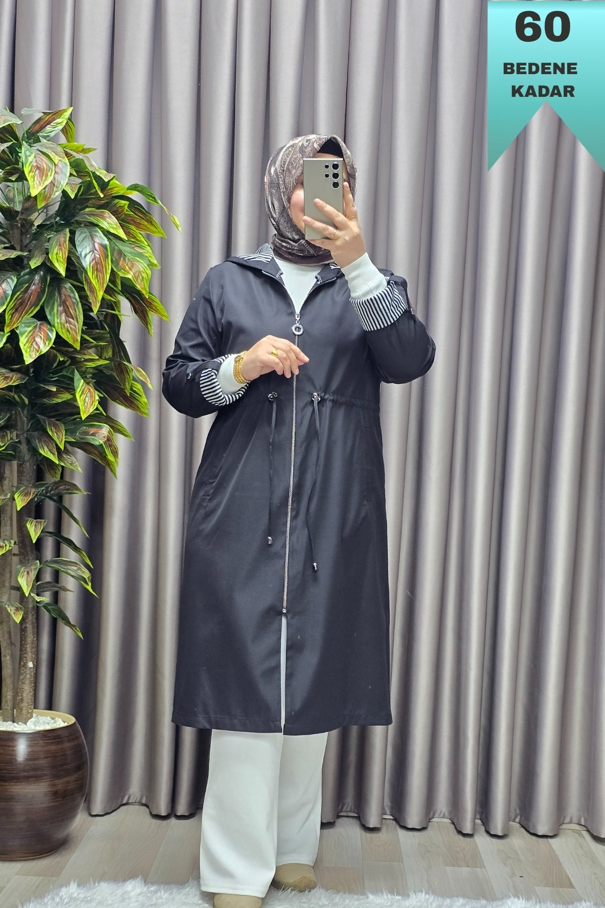 Kadın Tesettür Giyim Büyük Beden Fransız Boy Mevsimlik Trençkot
