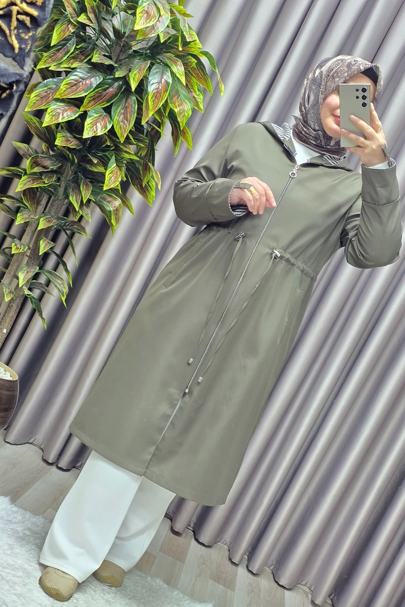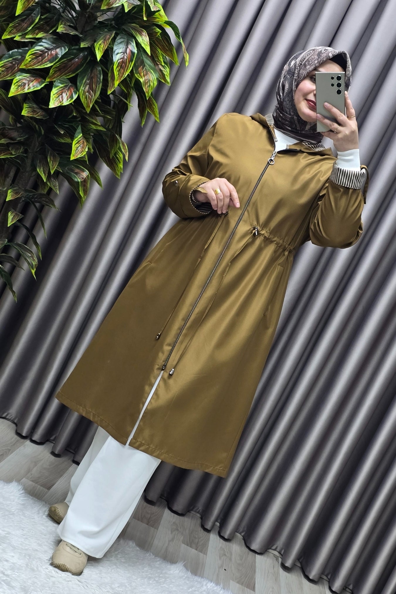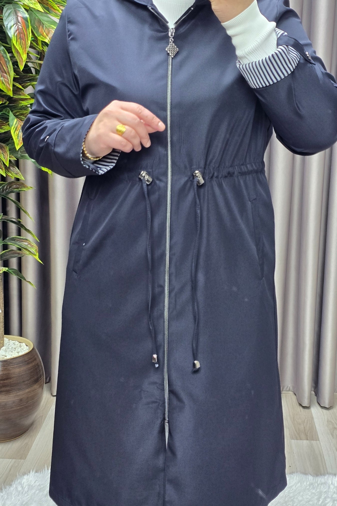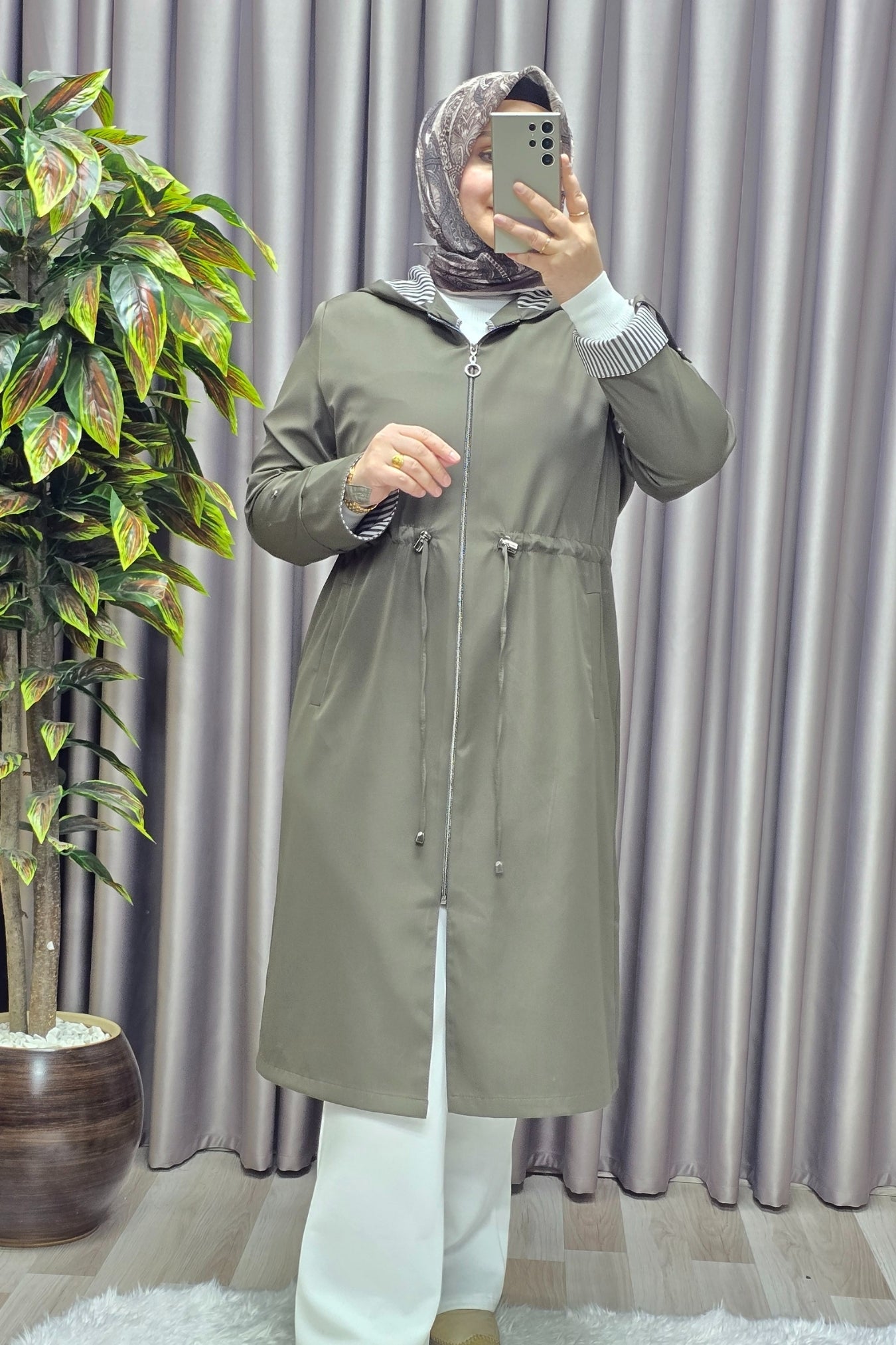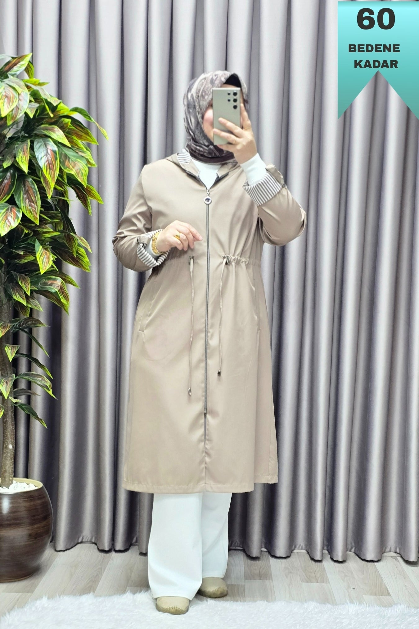 Kadın Tesettür Giyim Büyük Beden Fransız Boy Mevsimlik Trençkot