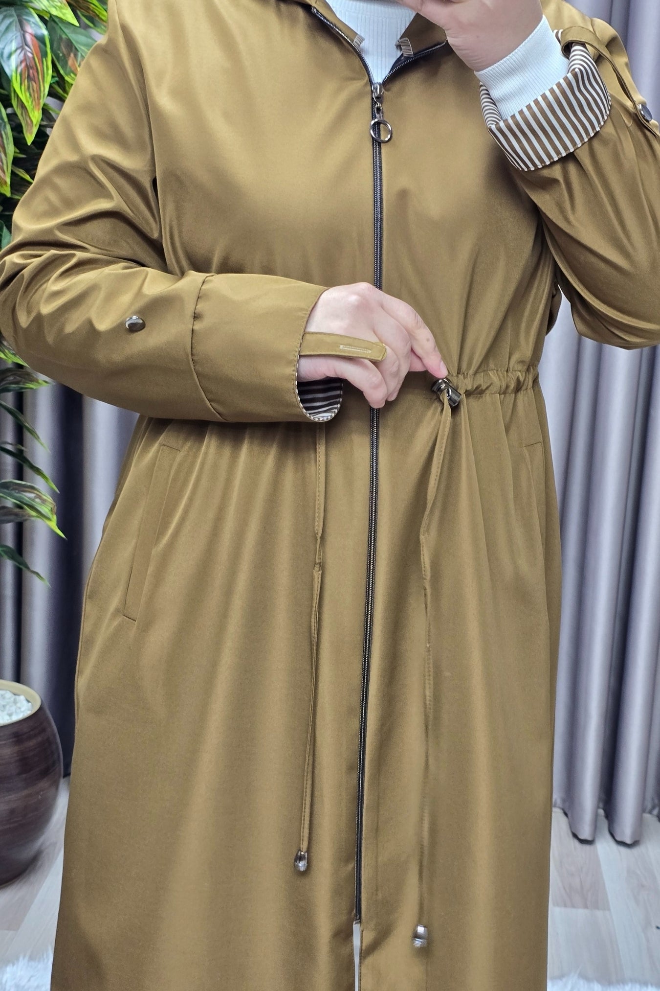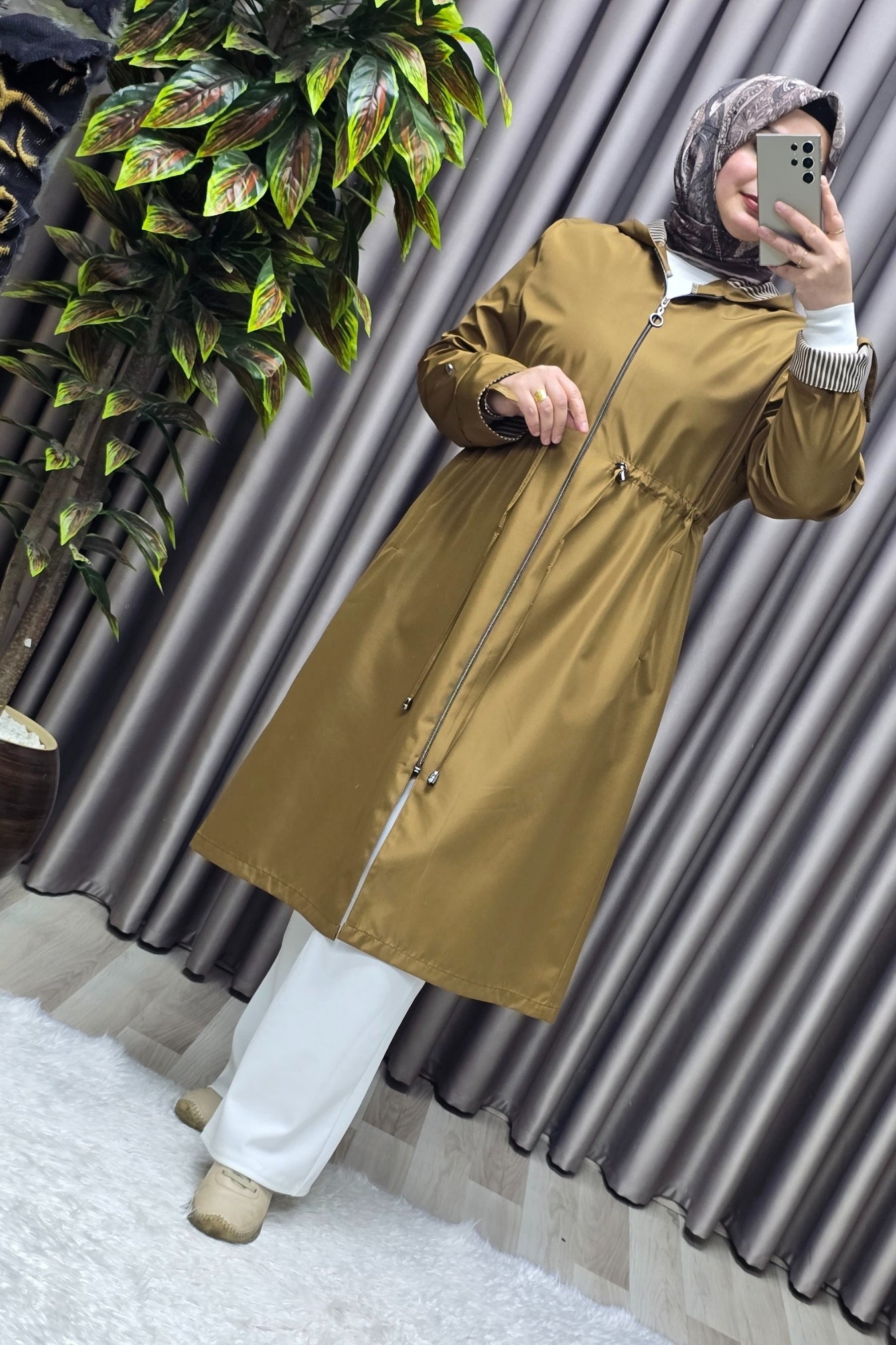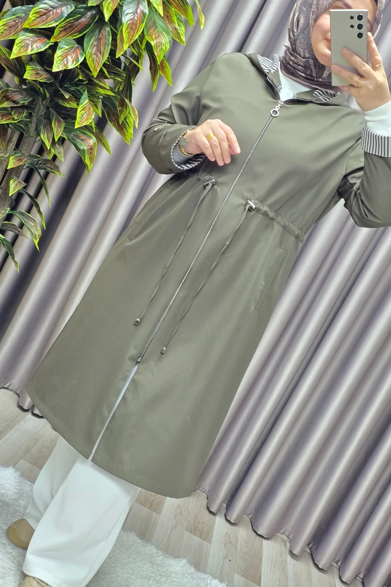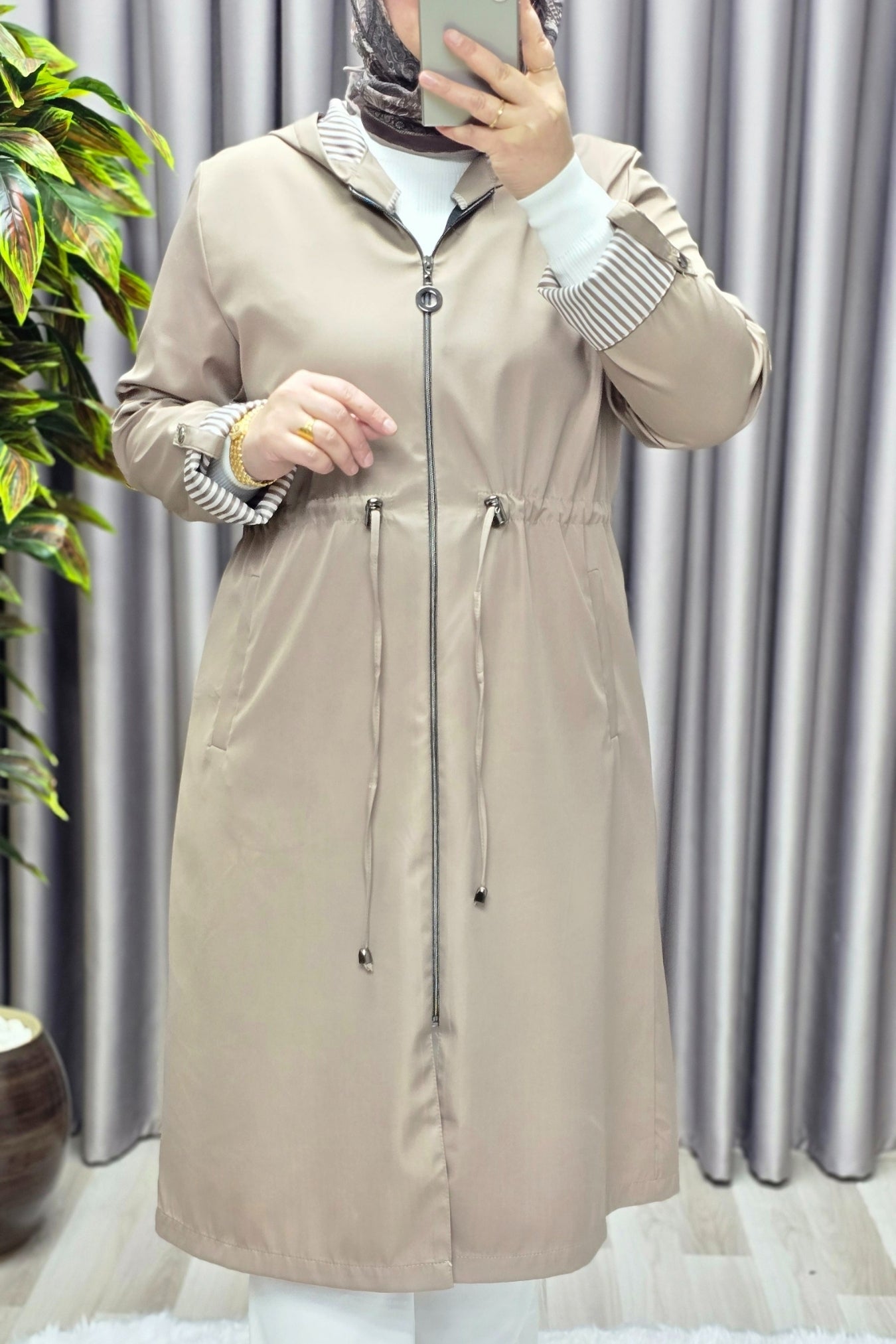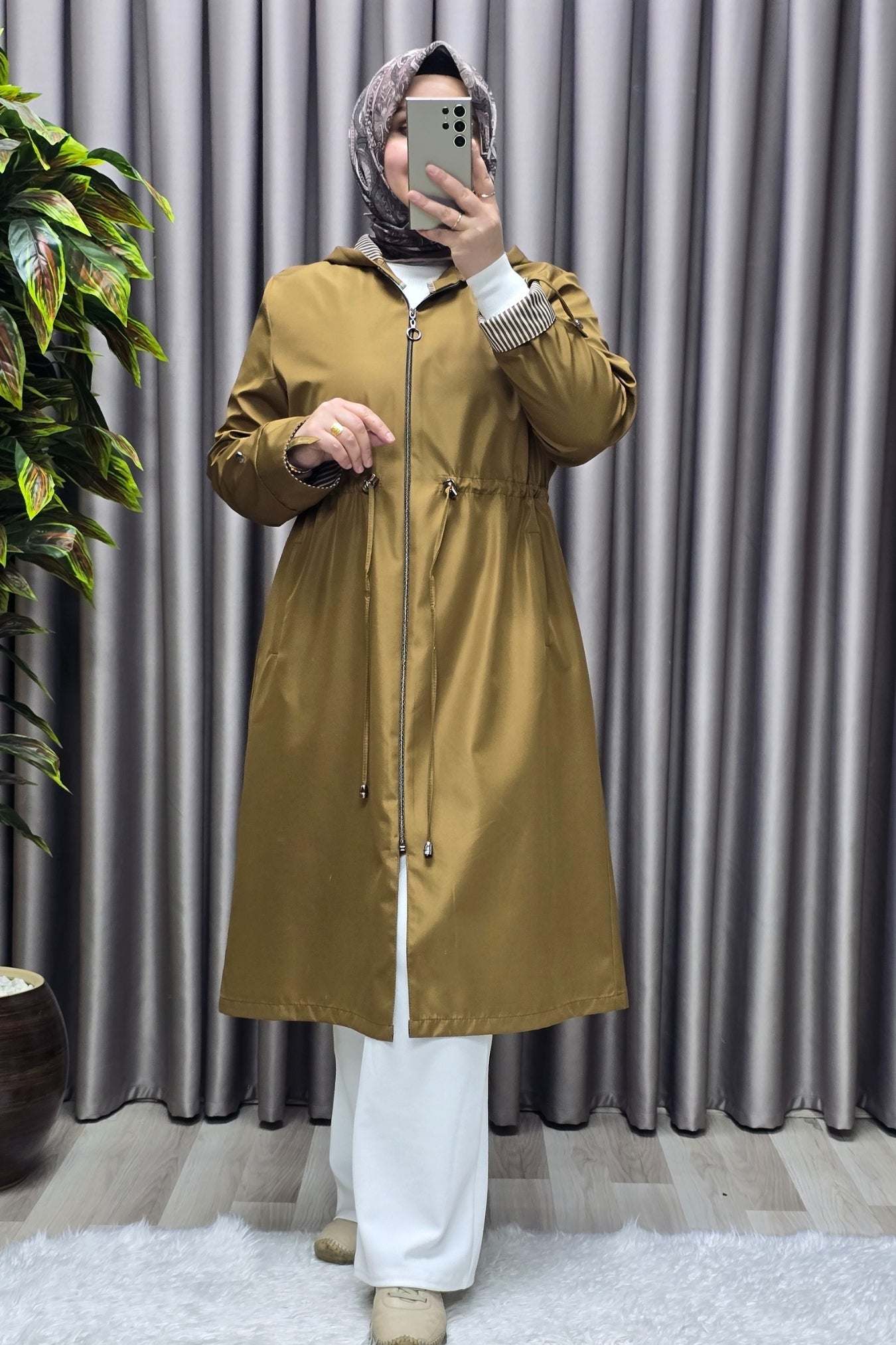 Kadın Tesettür Giyim Büyük Beden Fransız Boy Mevsimlik Trençkot