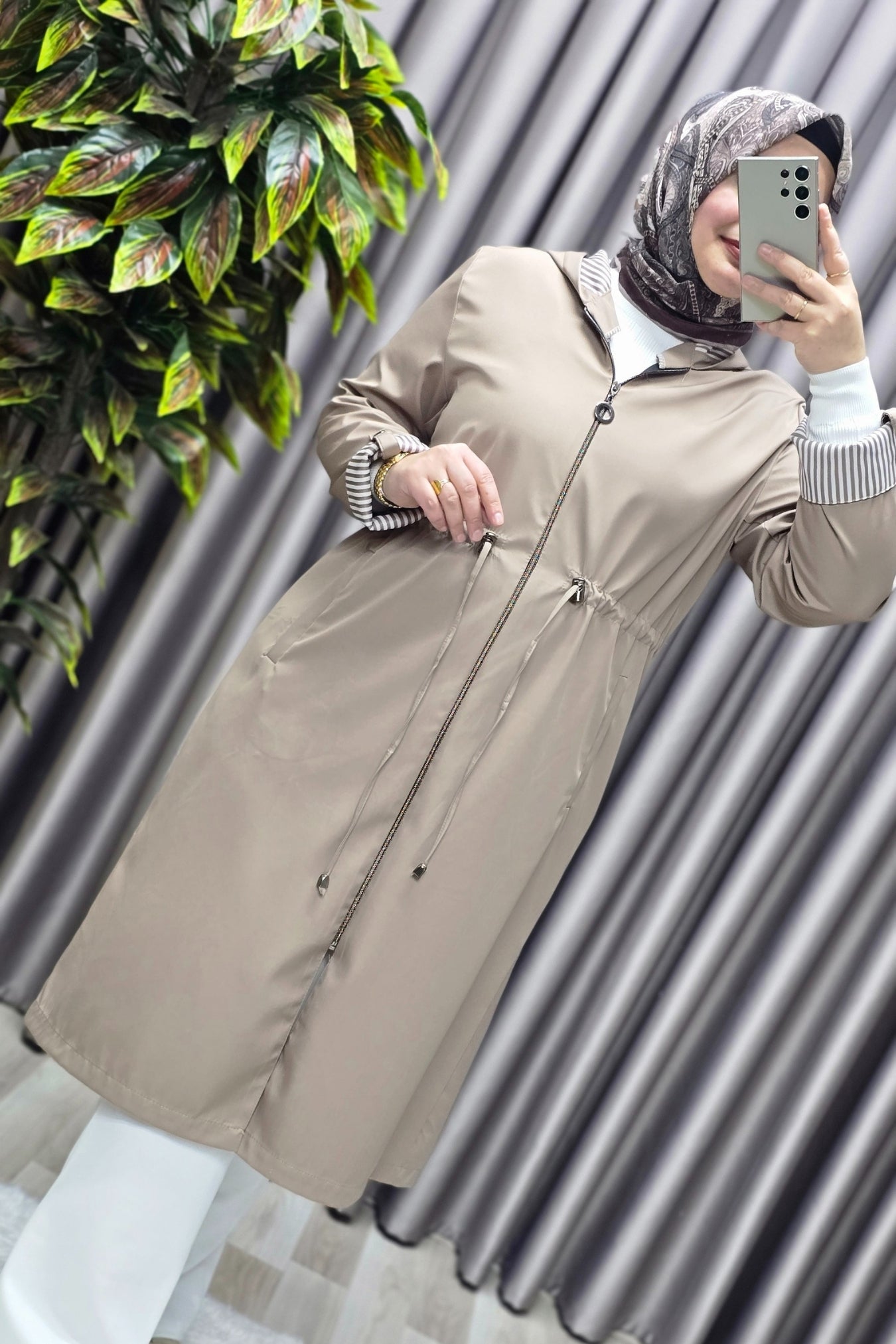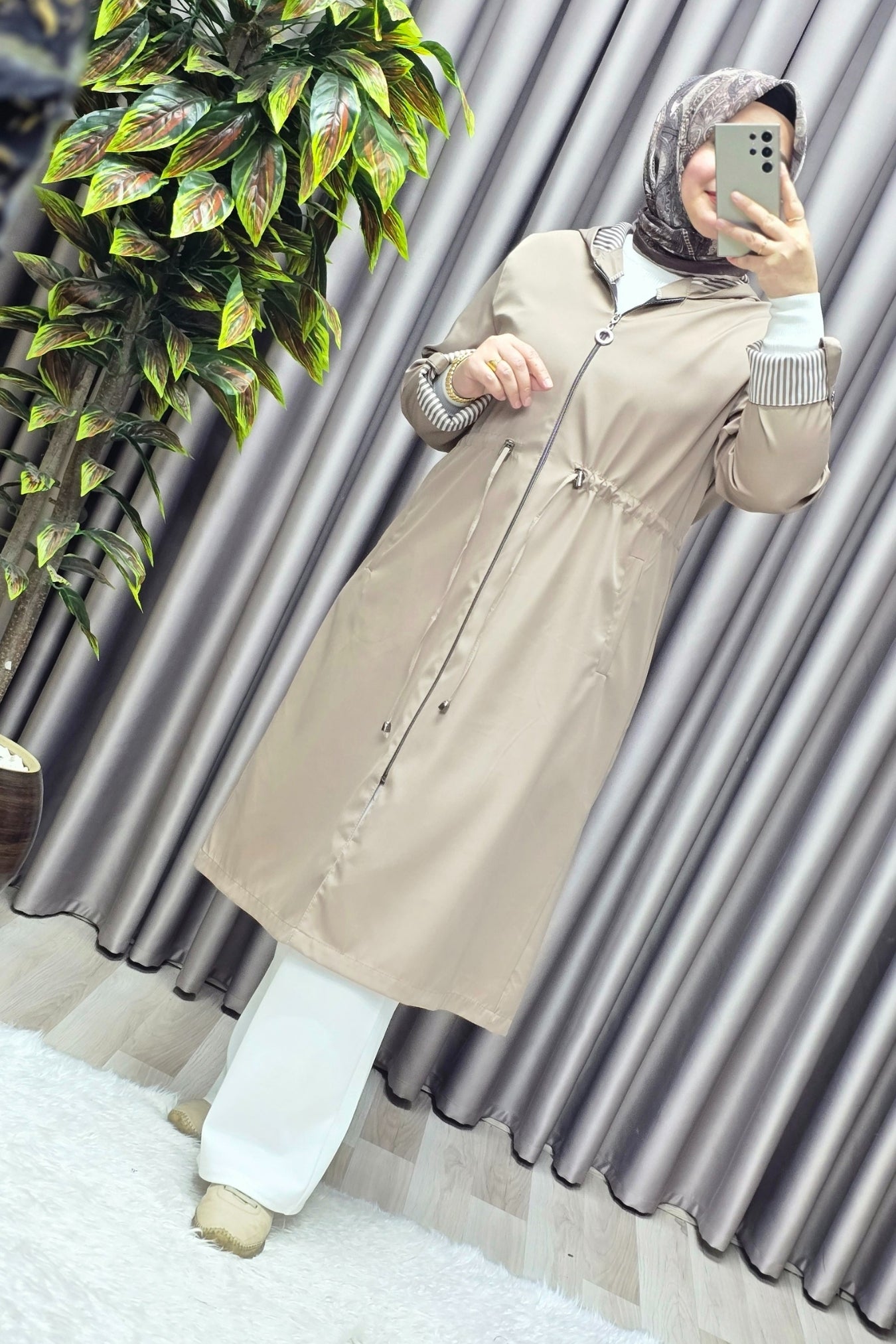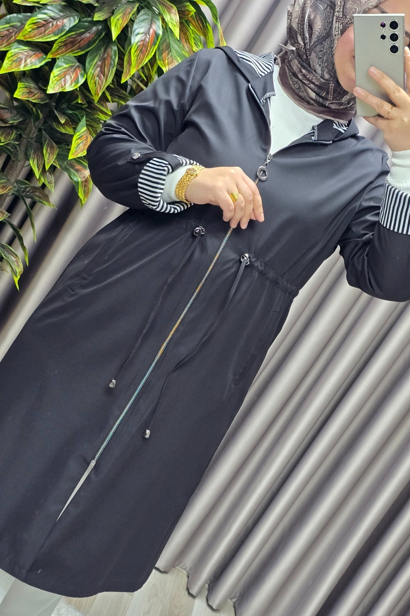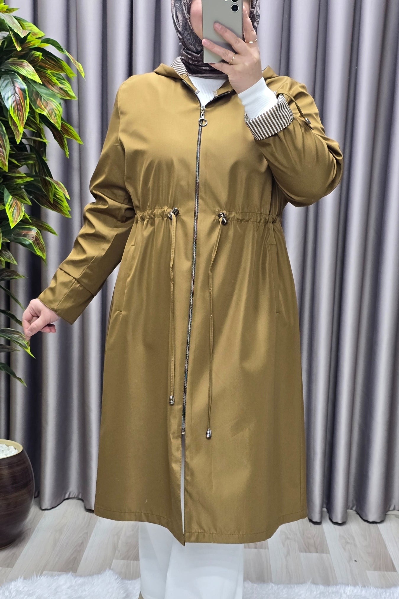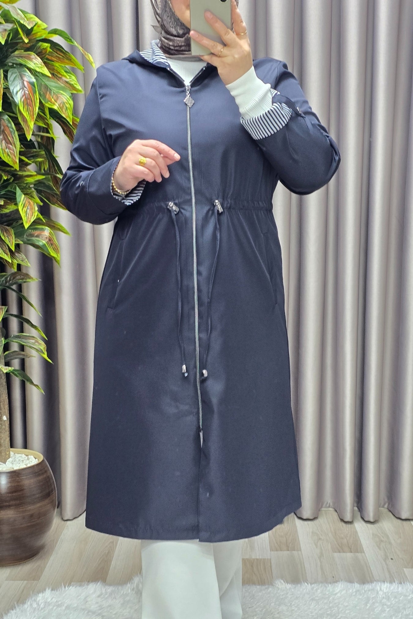 Kadın Tesettür Giyim Büyük Beden Fransız Boy Mevsimlik Trençkot