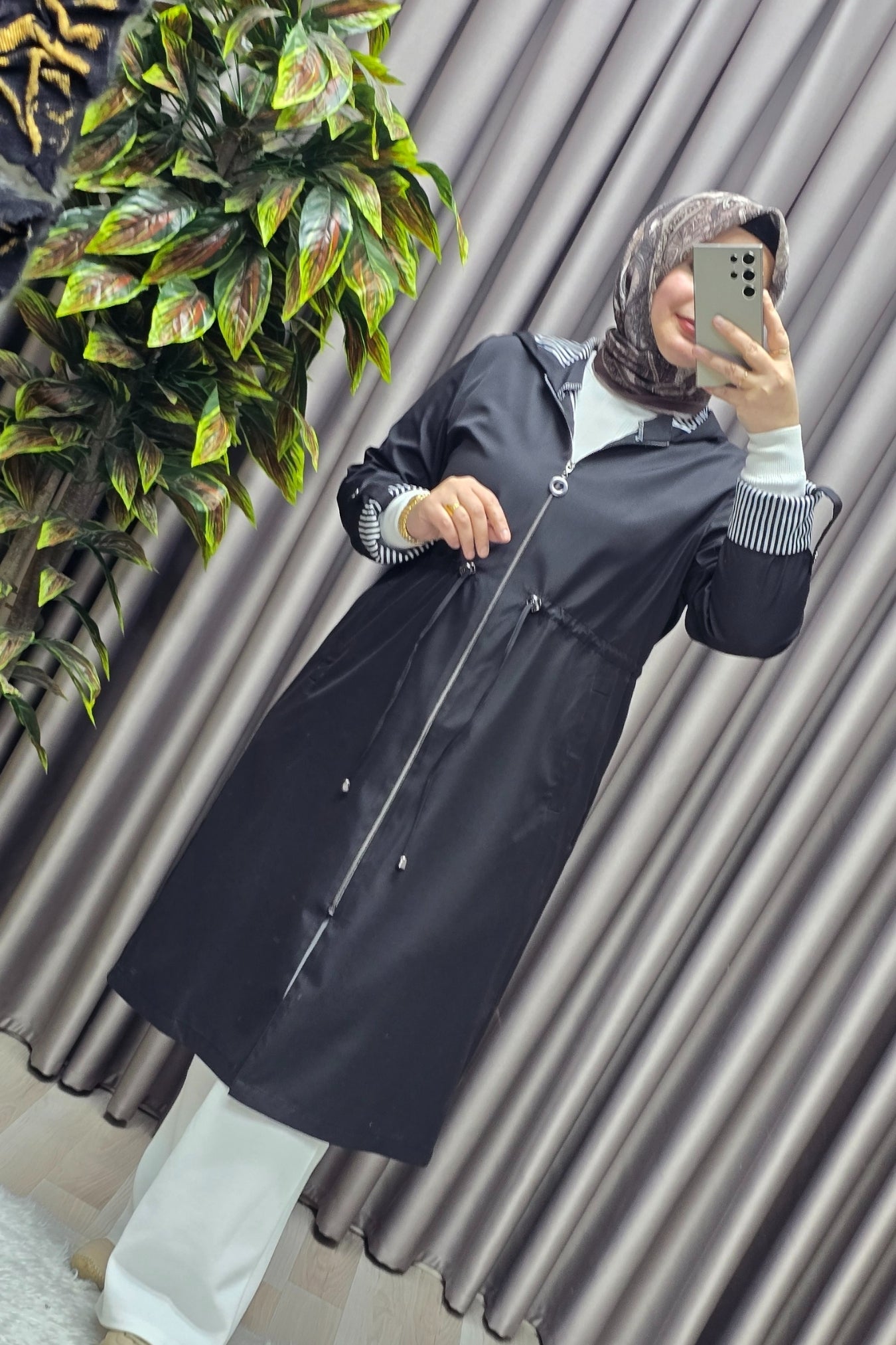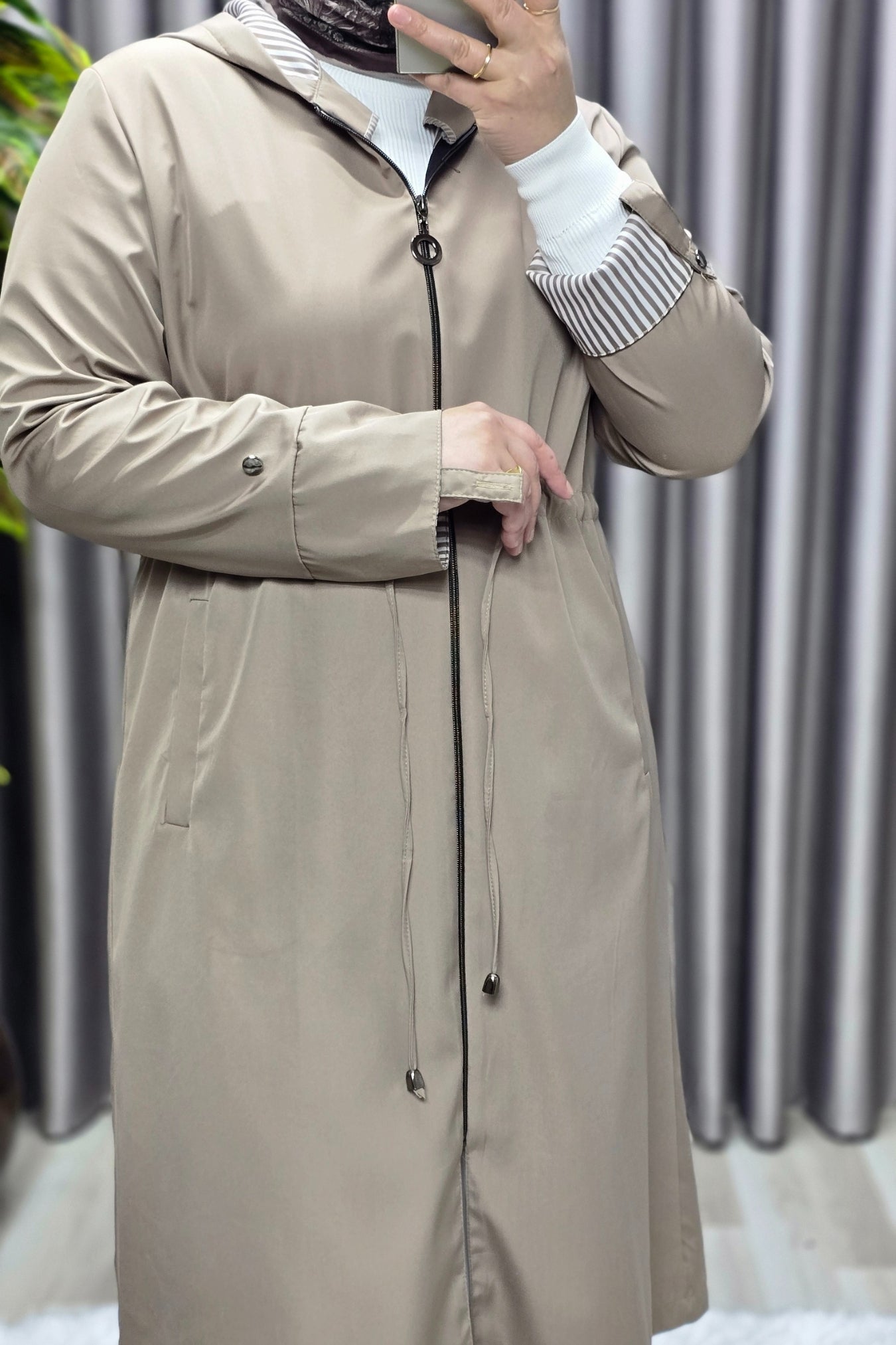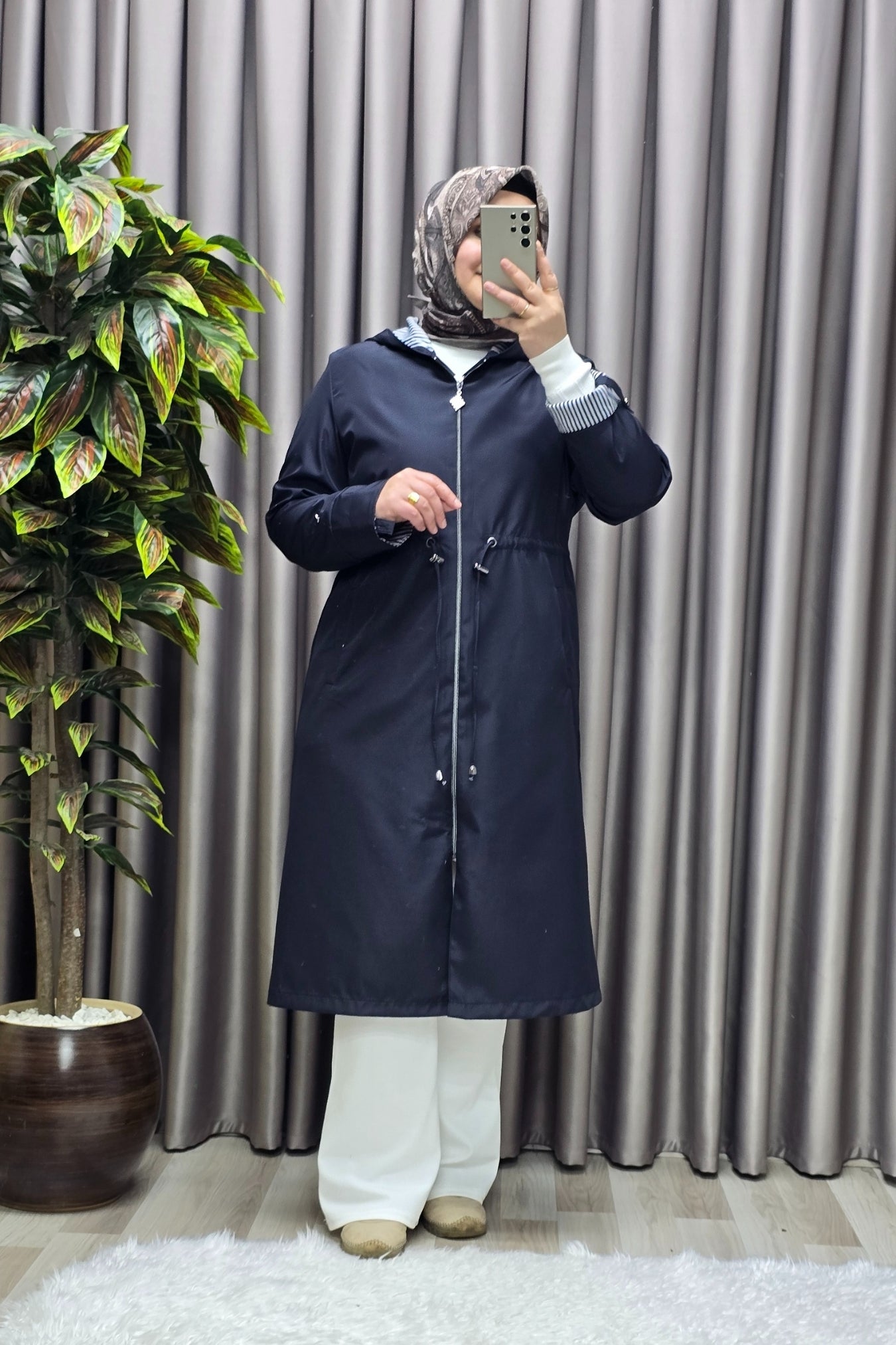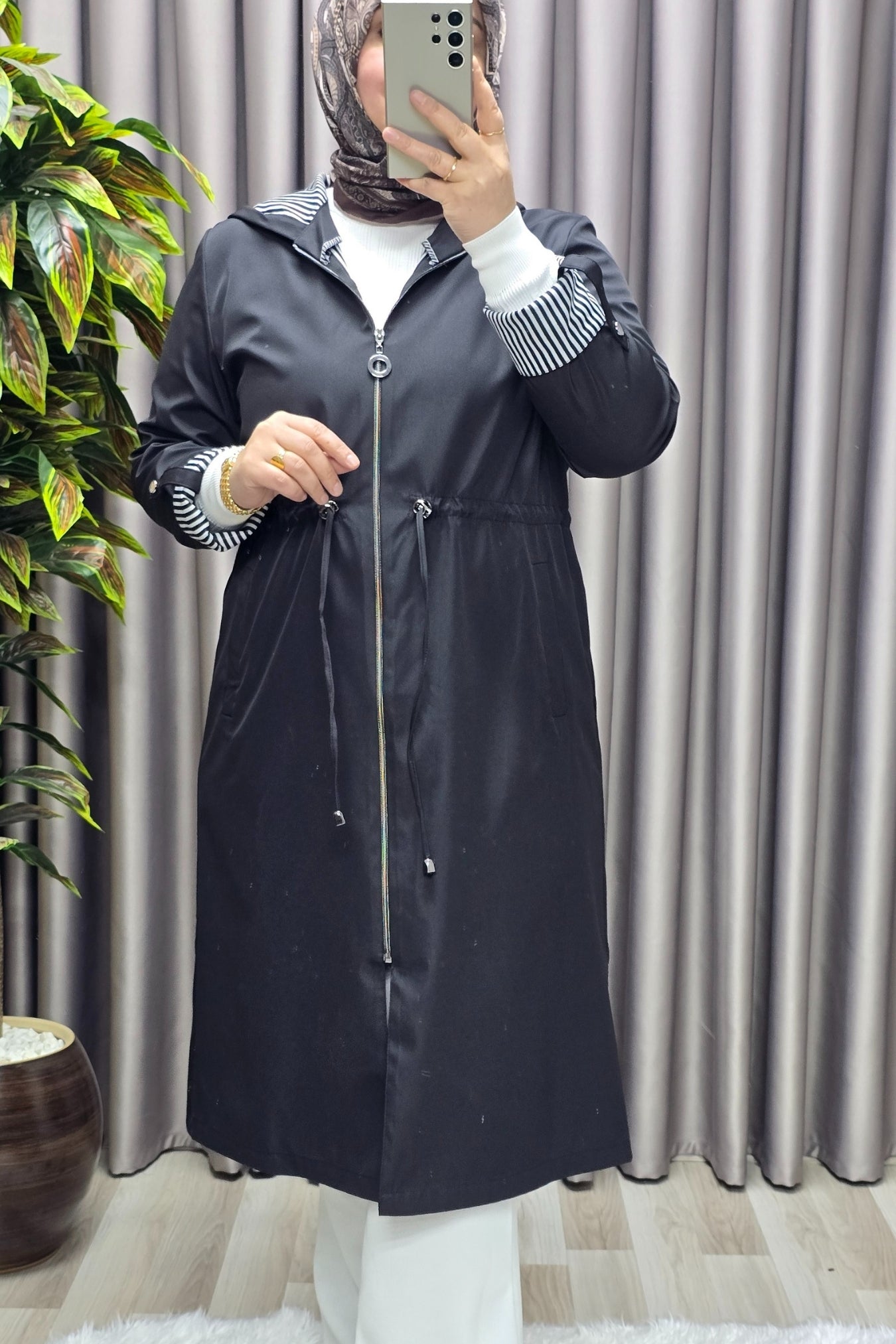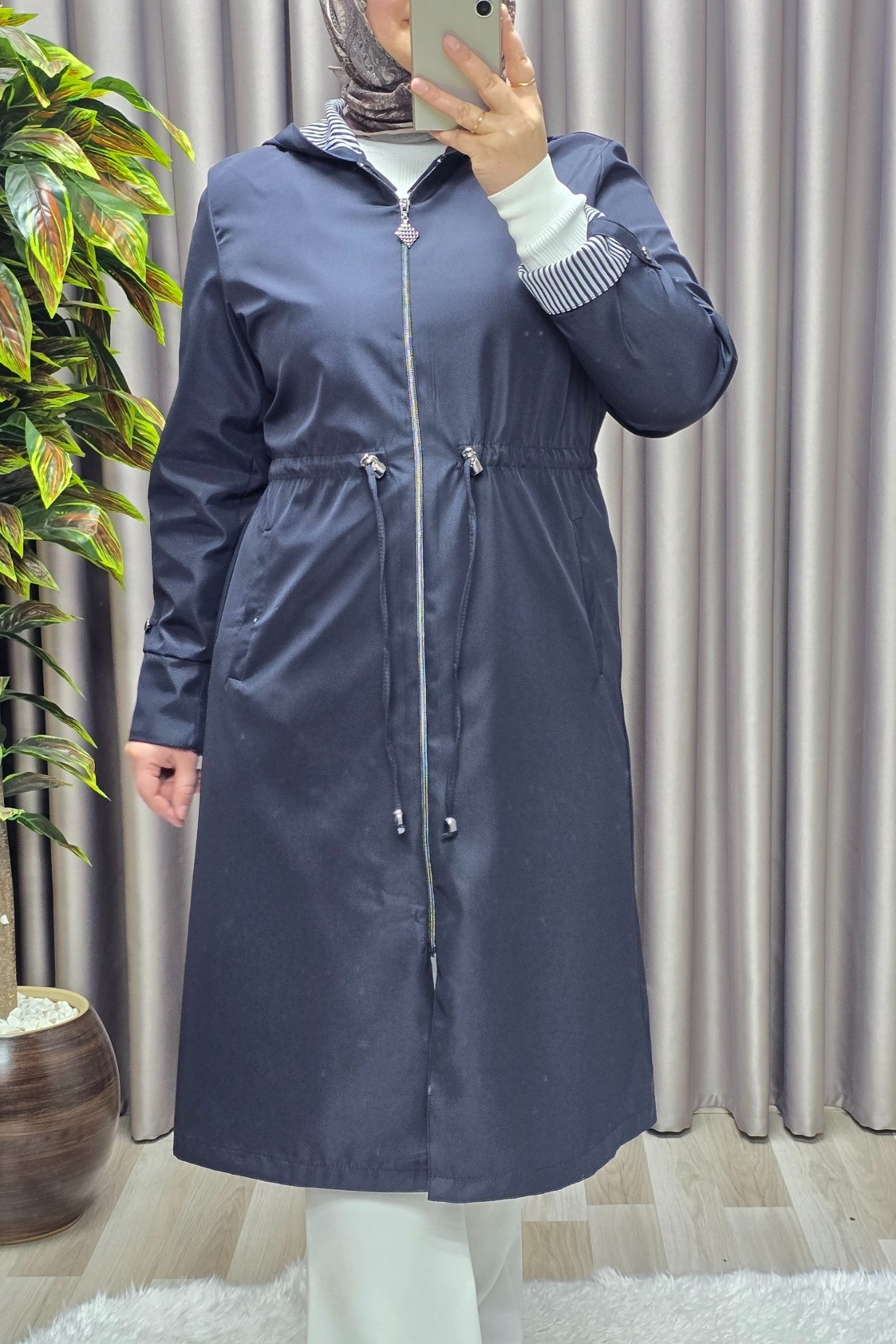 Kadın Tesettür Giyim Büyük Beden Fransız Boy Mevsimlik Trençkot