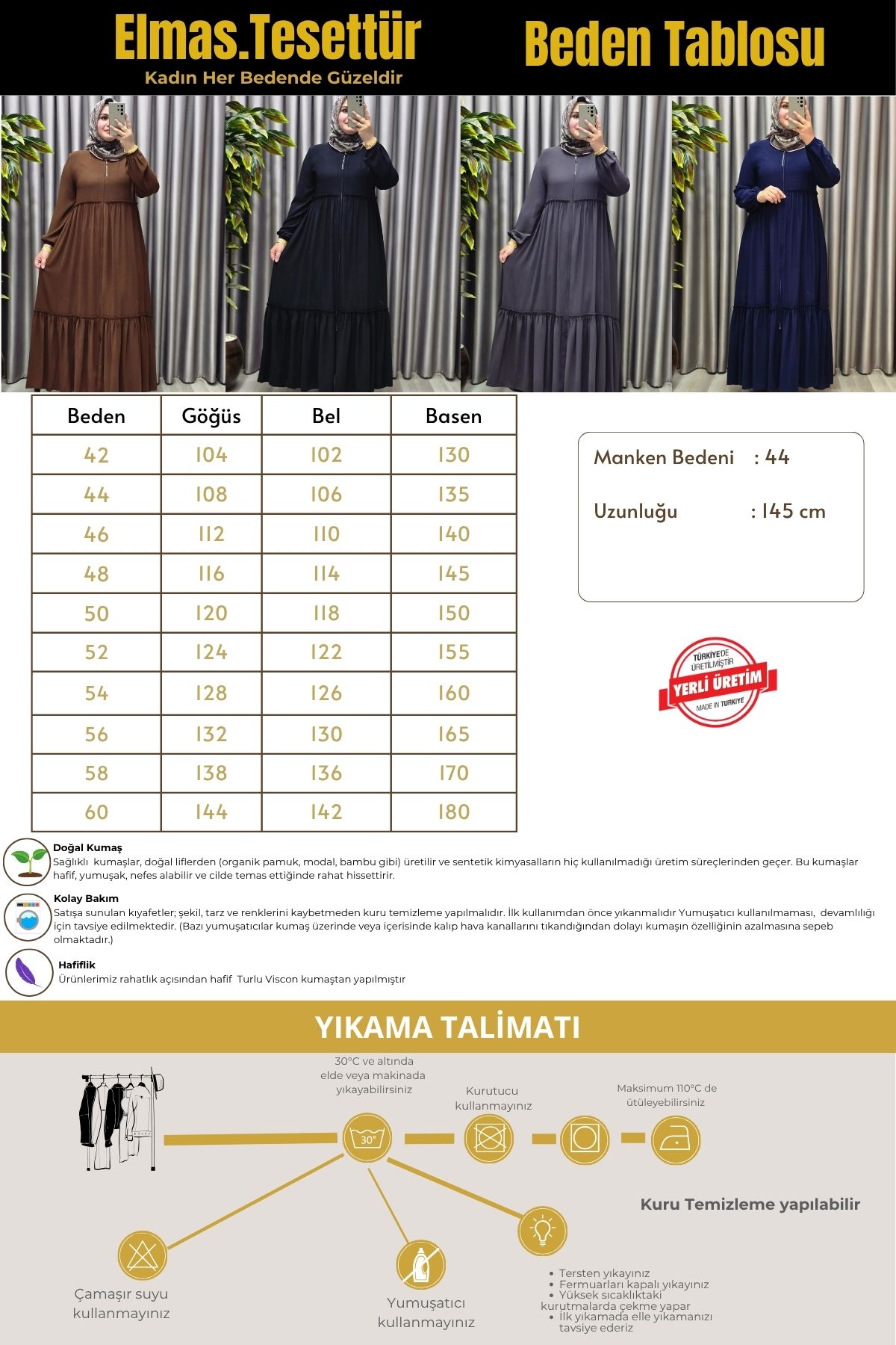 Endonezya krep kumaştan üretilen bu modern tesettür ferace, büyük beden (40-60) aralığına uyum sağlayan rahat kalıbıyla hem şıklığı hem de konforu bir arada sunar.