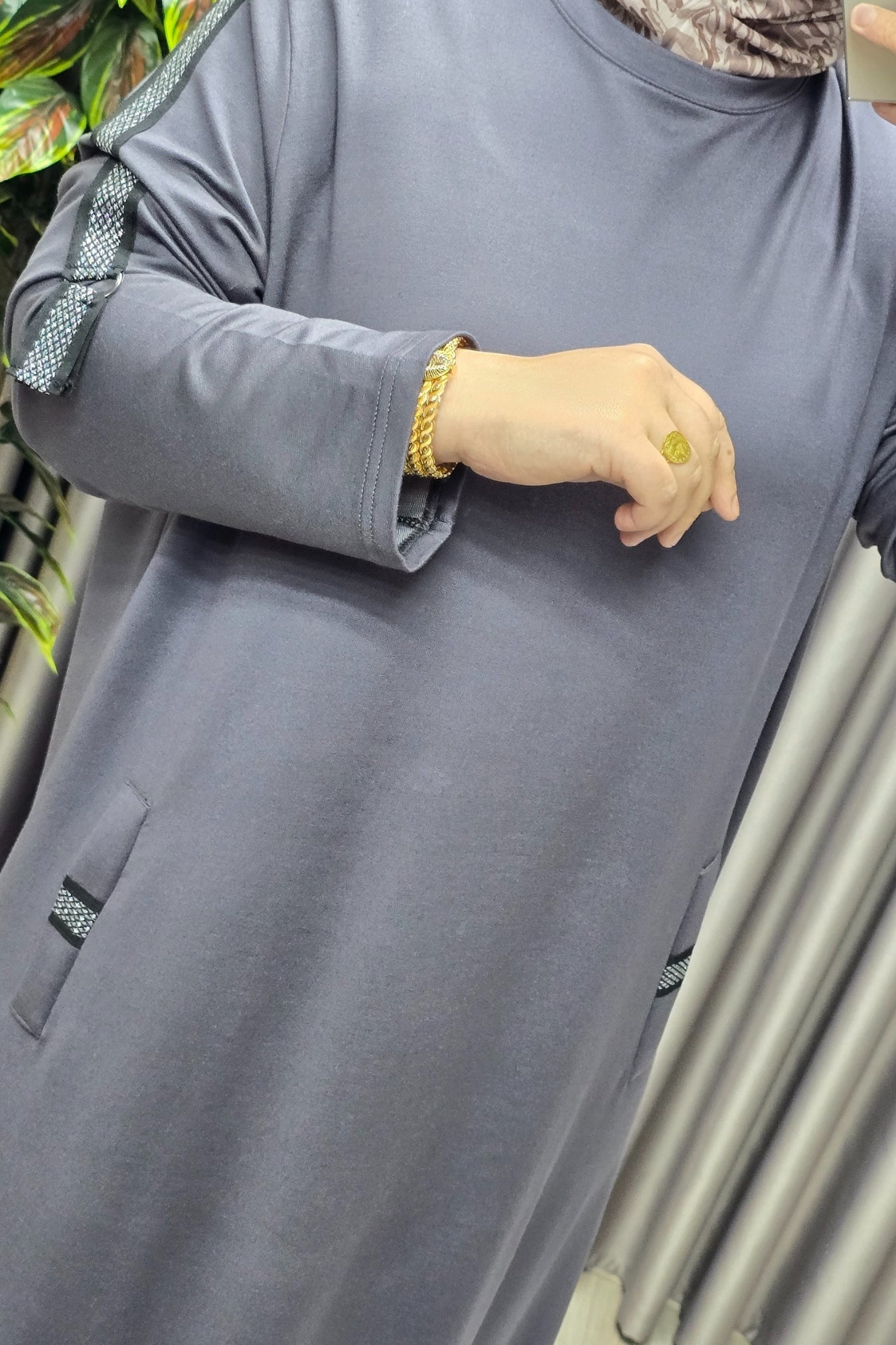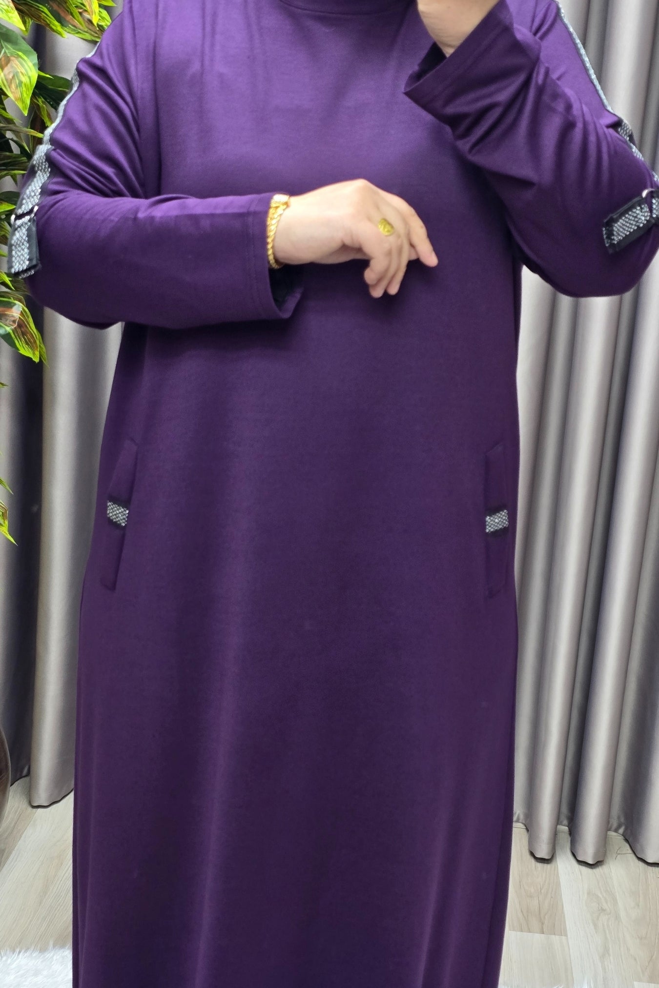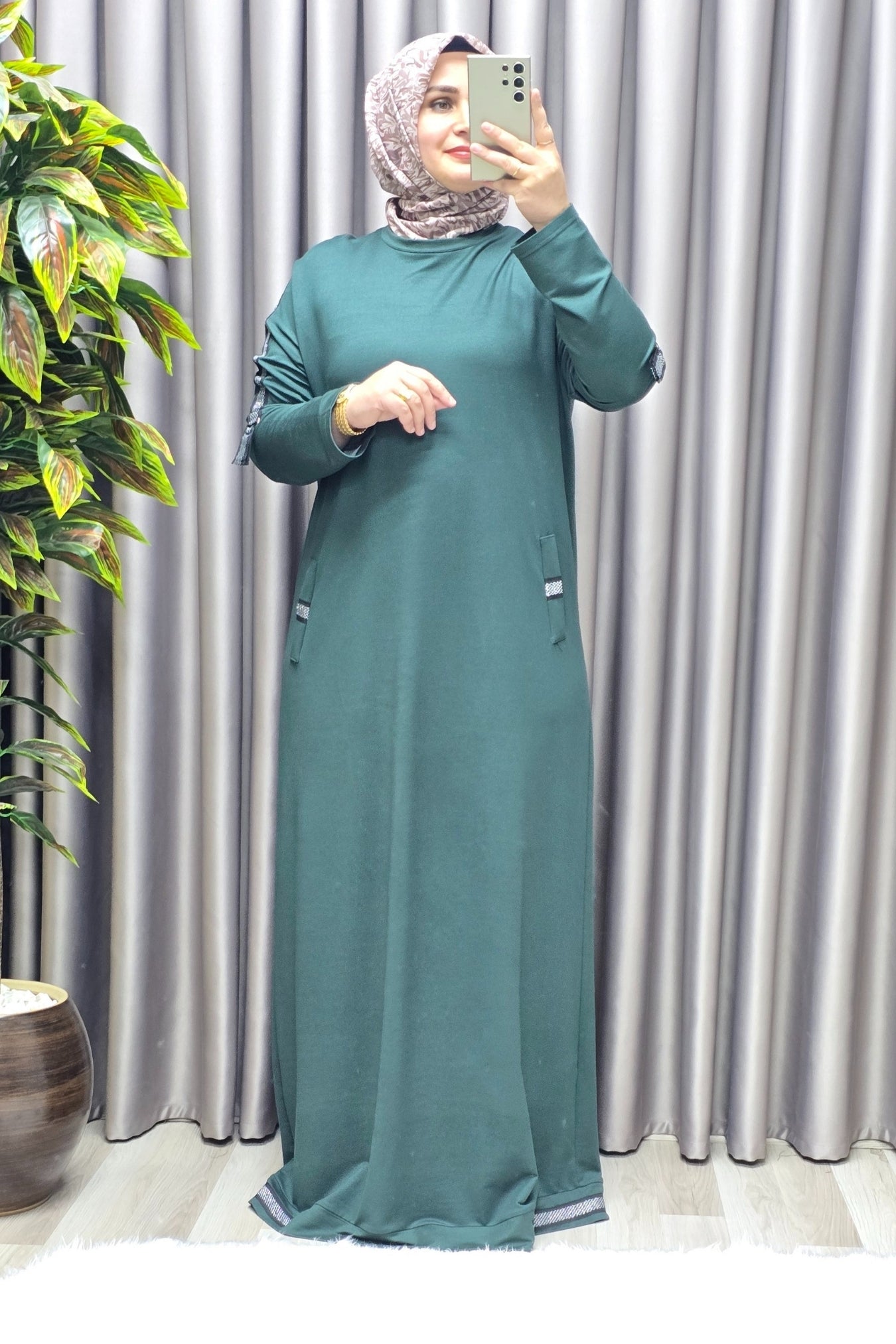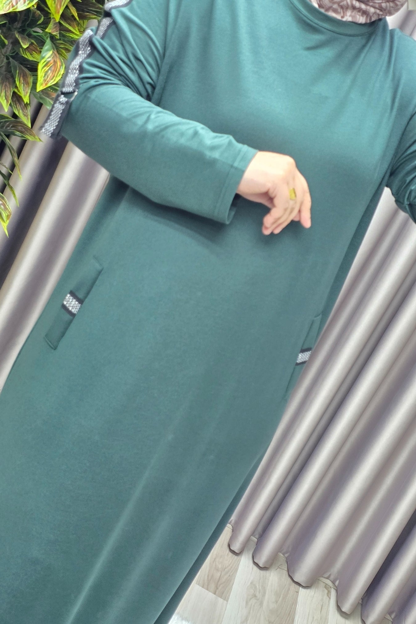 Kadın Tesettür Giyim Büyük Beden Kolu Şeritli Elbise