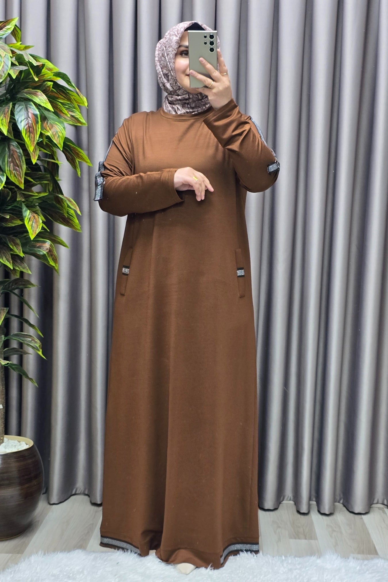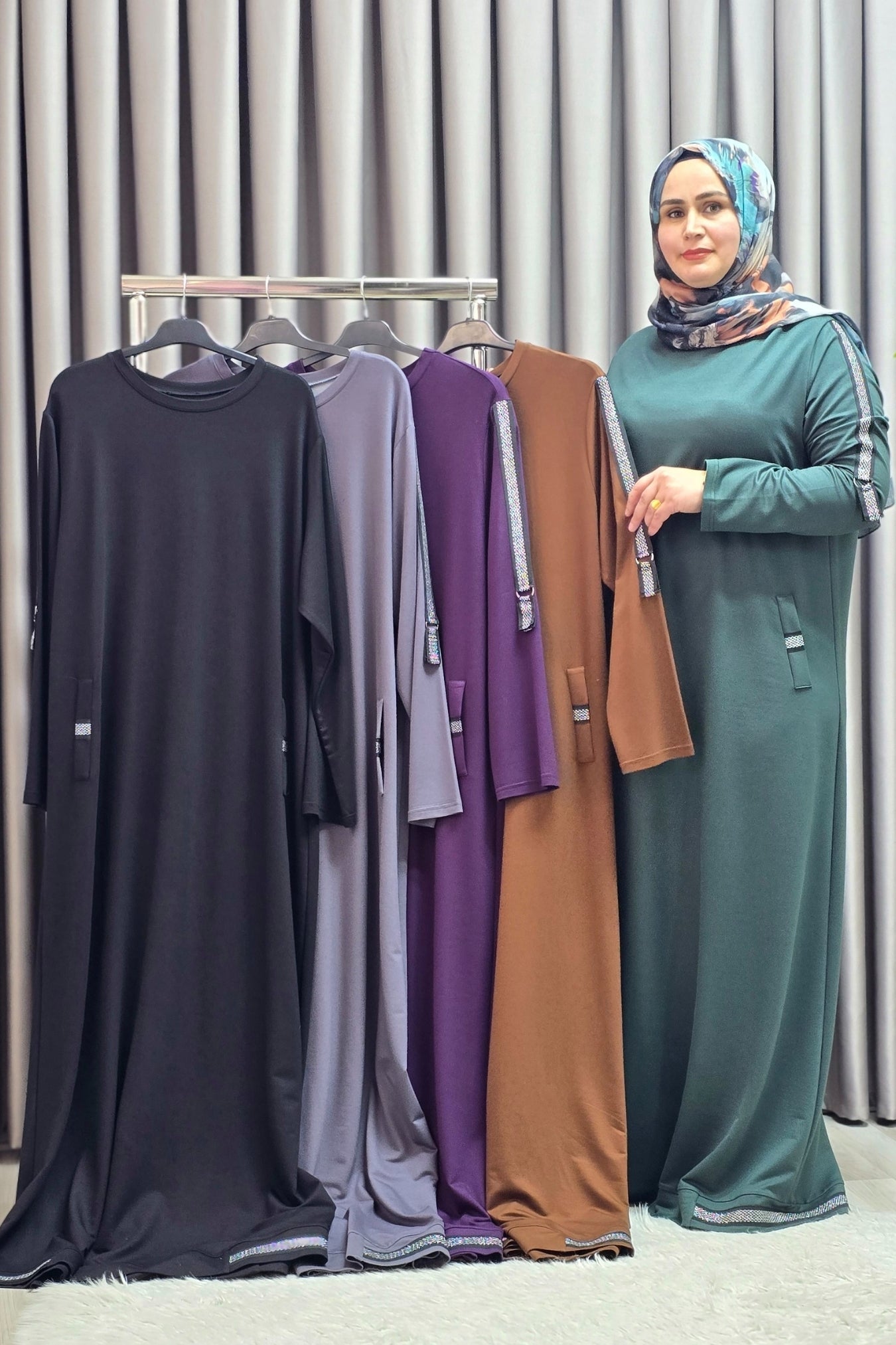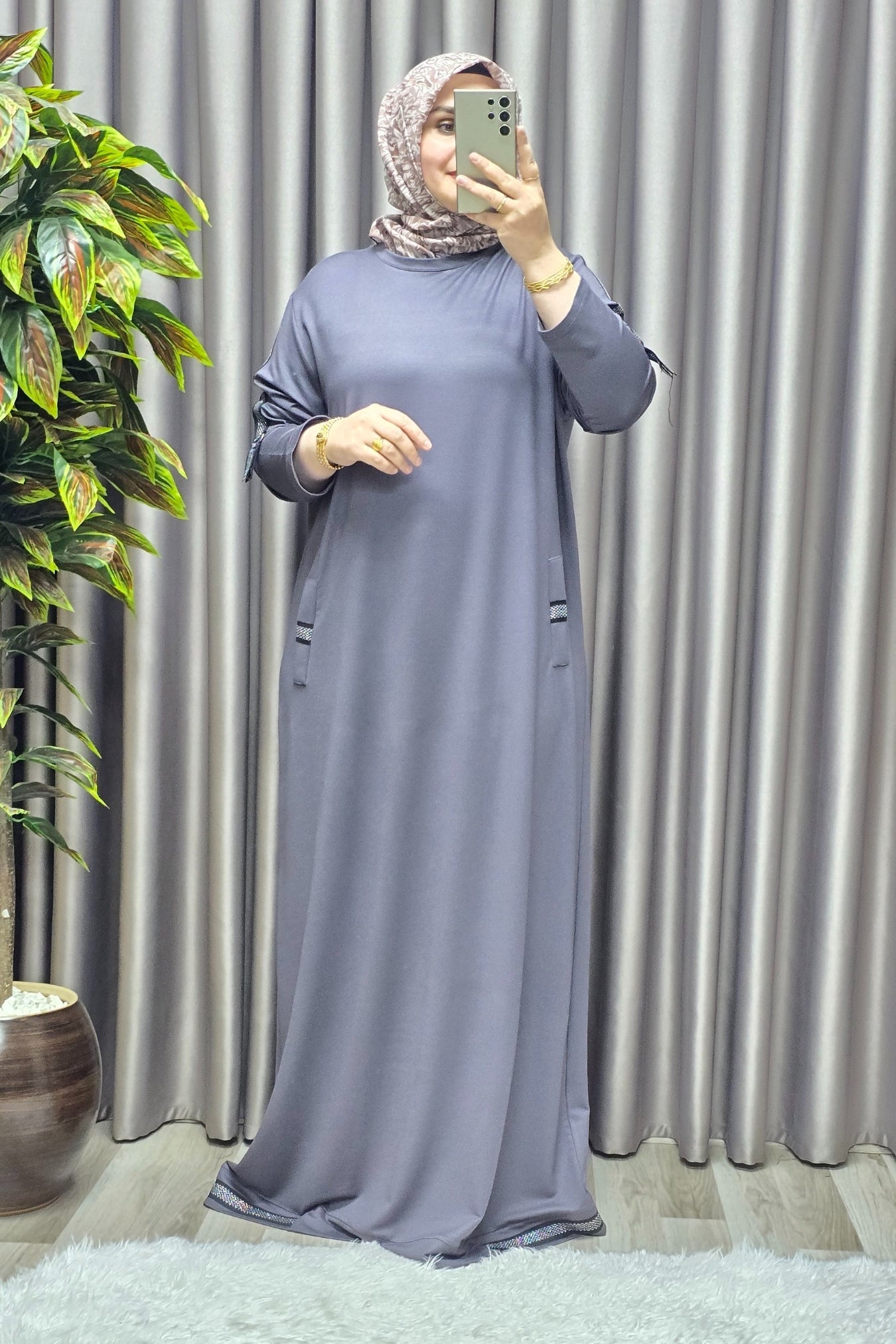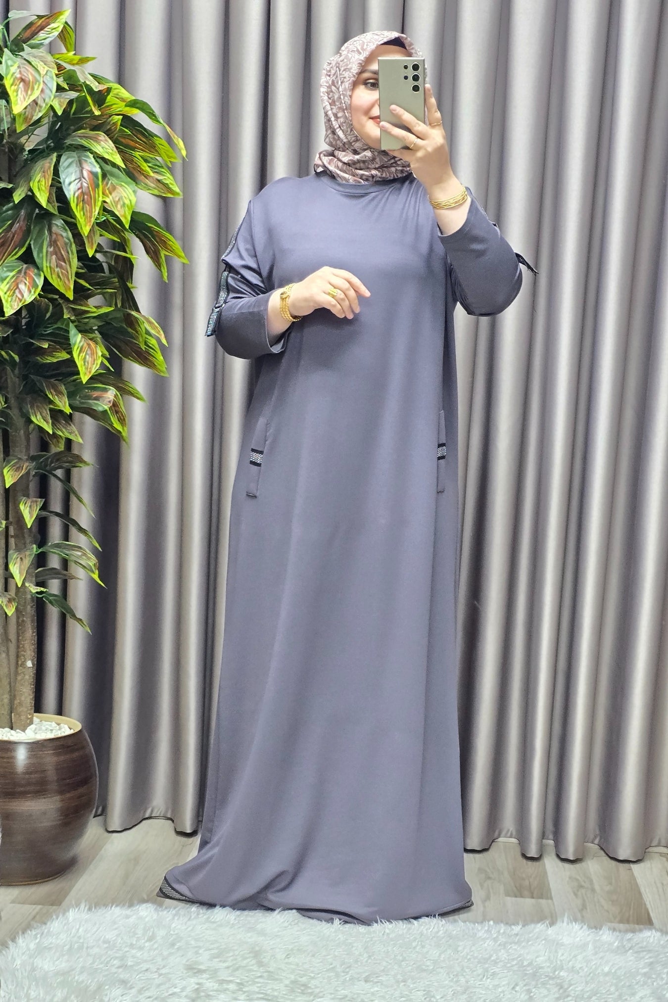 Kadın Tesettür Giyim Büyük Beden Kolu Şeritli Elbise