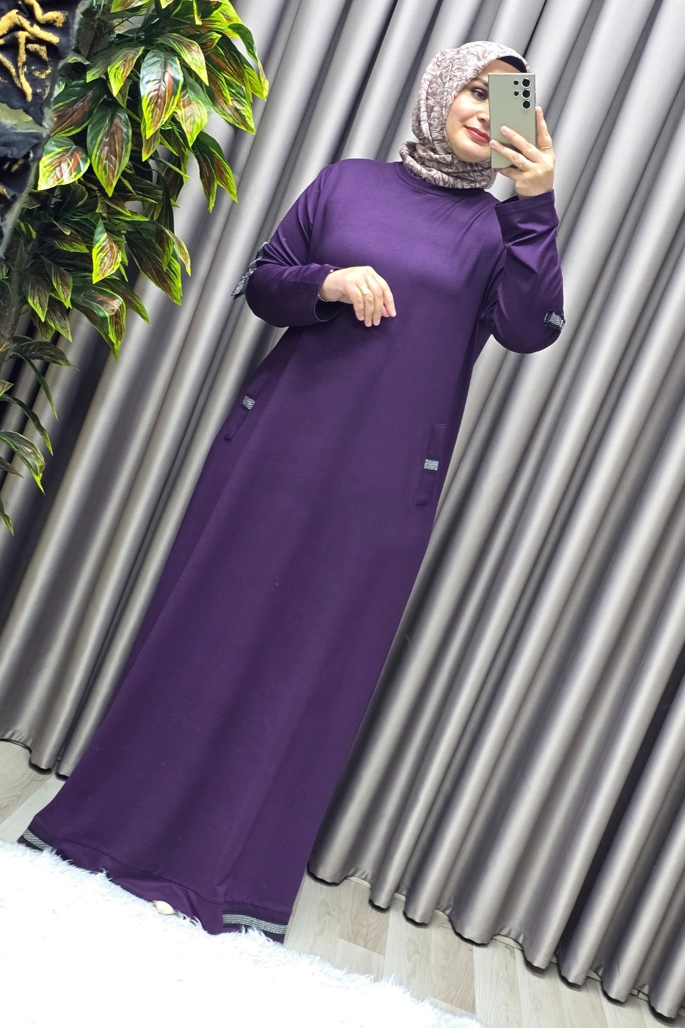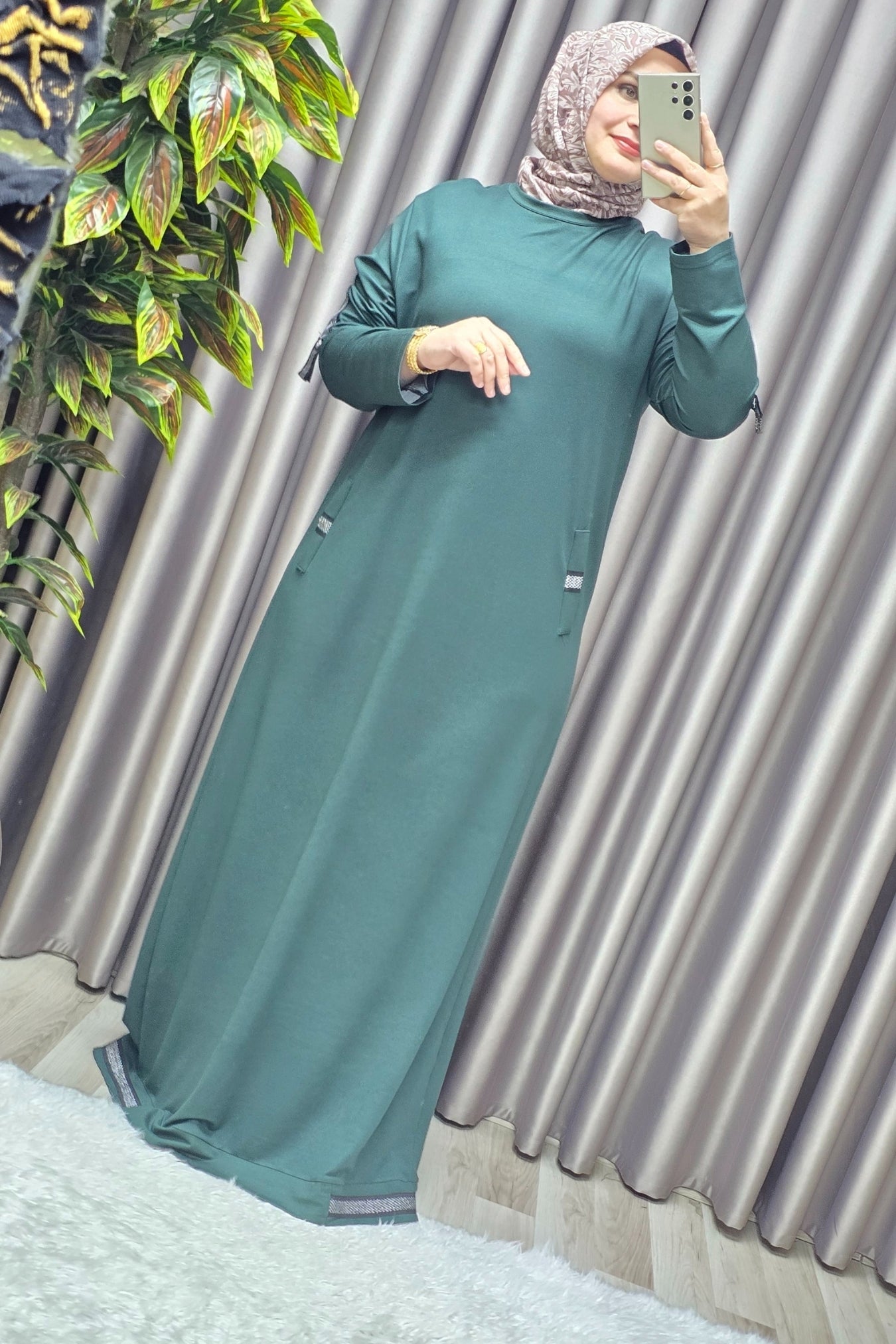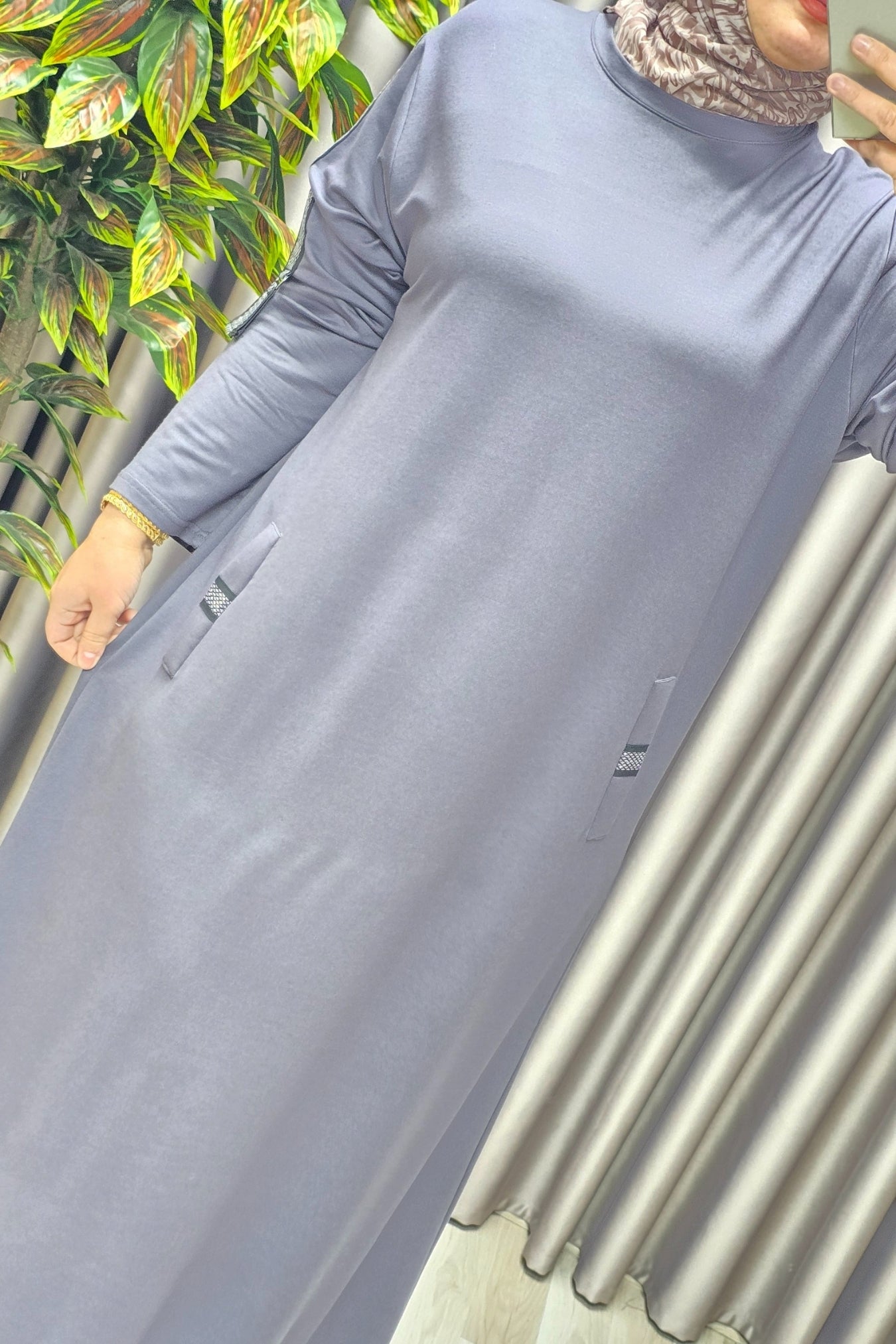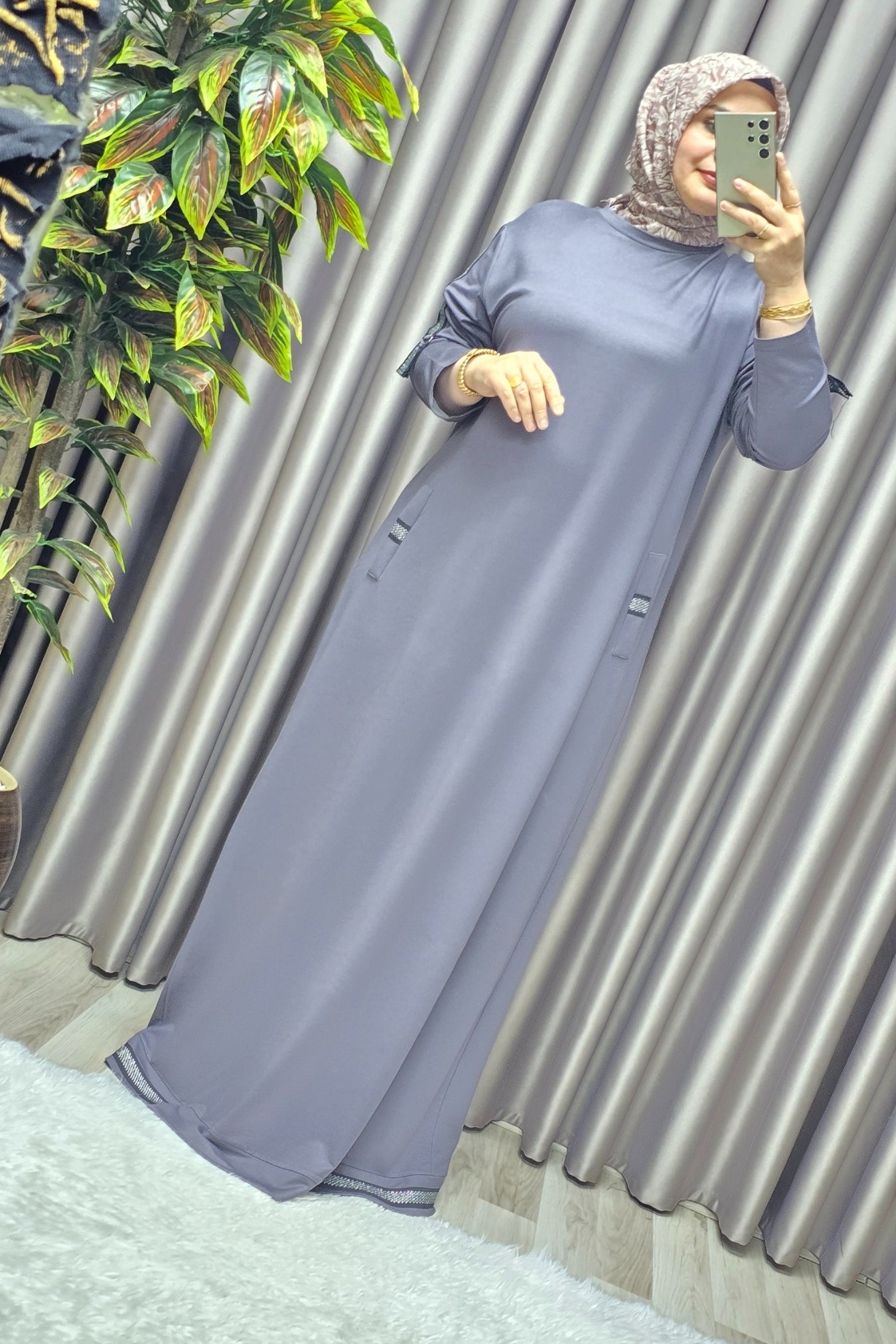 Kadın Tesettür Giyim Büyük Beden Kolu Şeritli Elbise