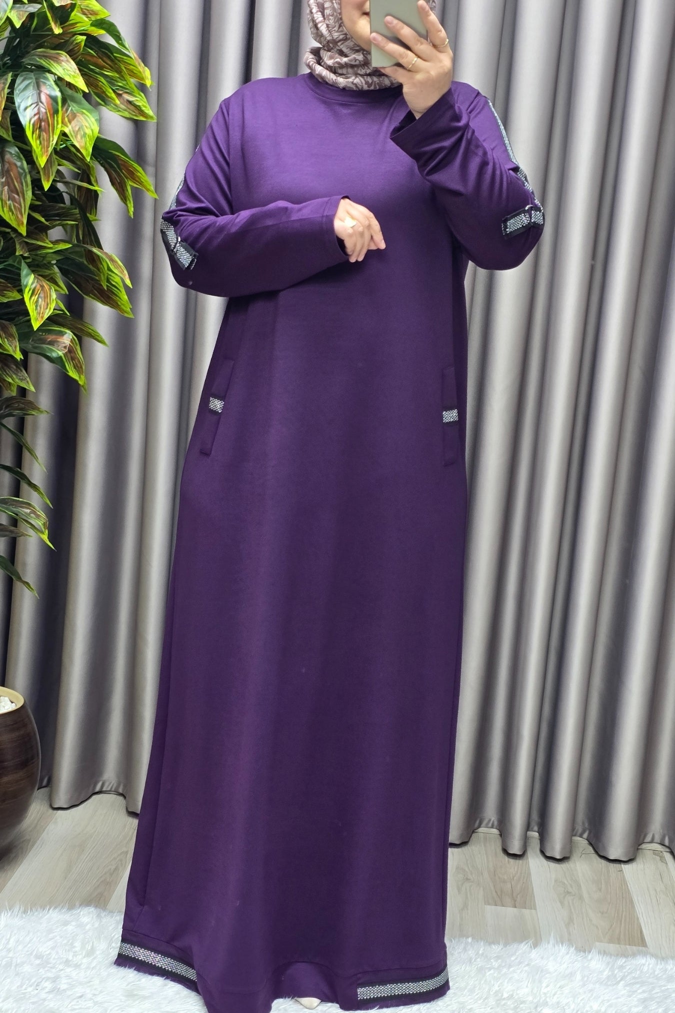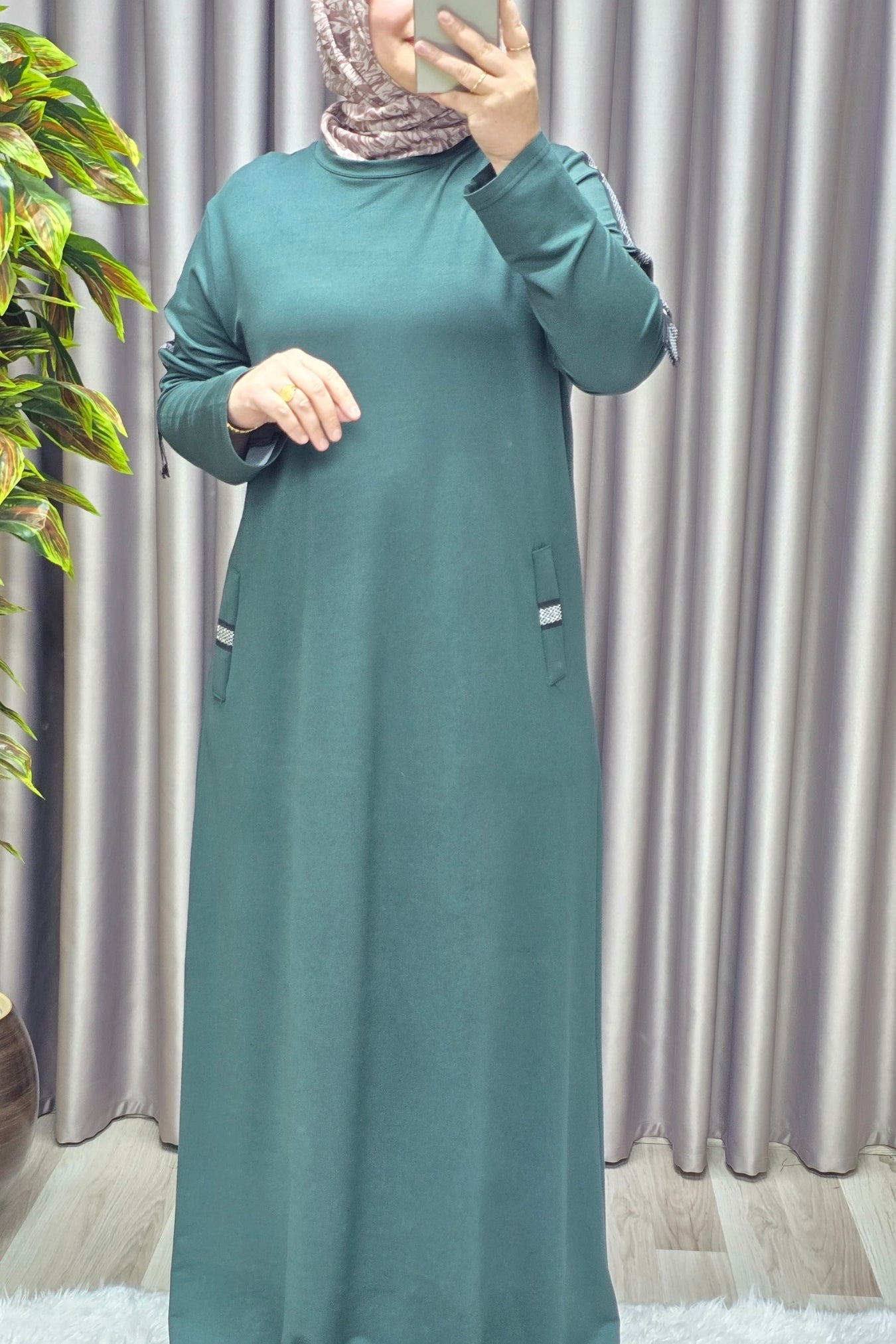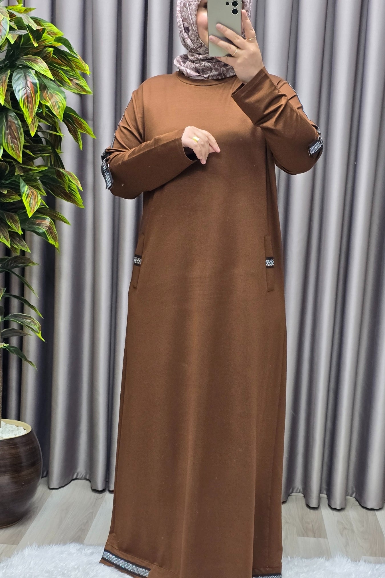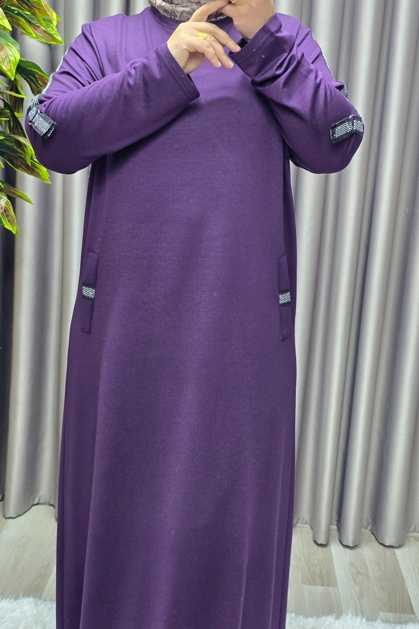 Kadın Tesettür Giyim Büyük Beden Kolu Şeritli Elbise