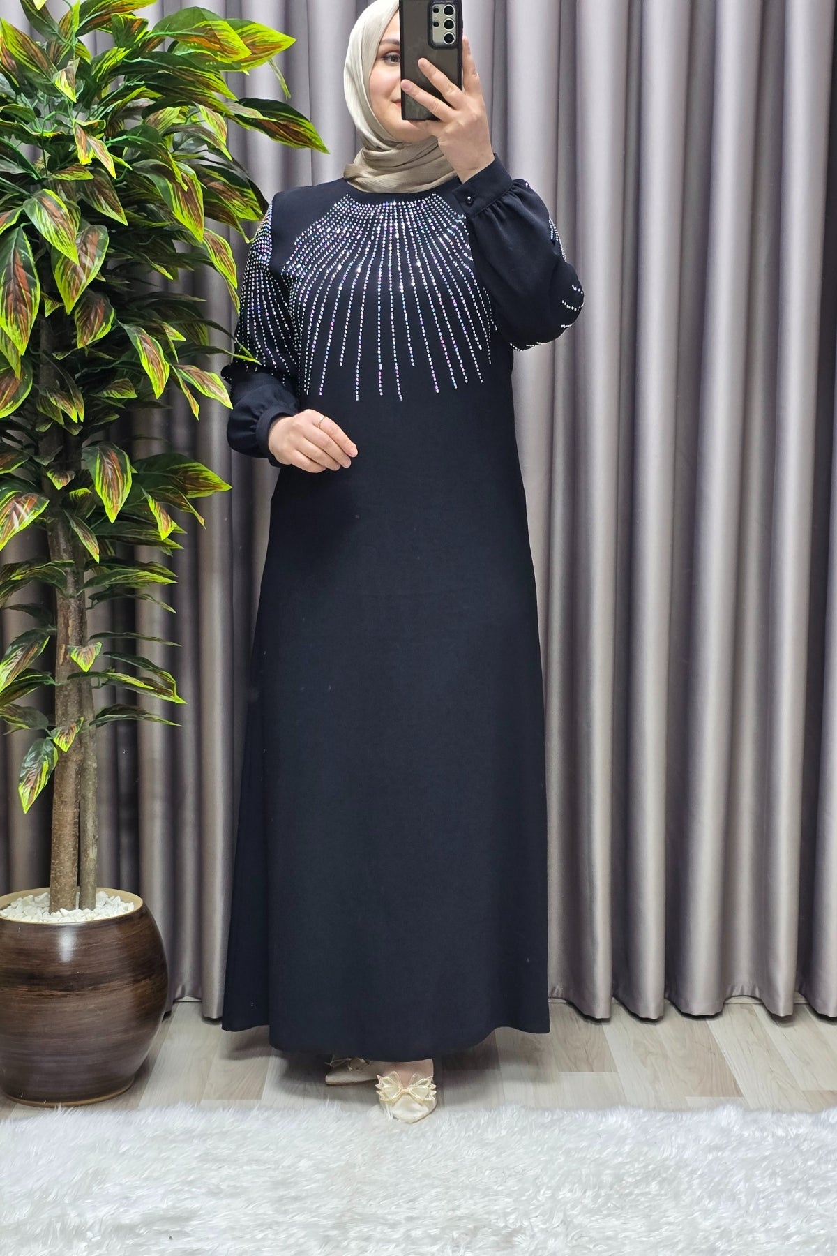Kadın Tesettür Giyim Büyük Beden Krep Abiye