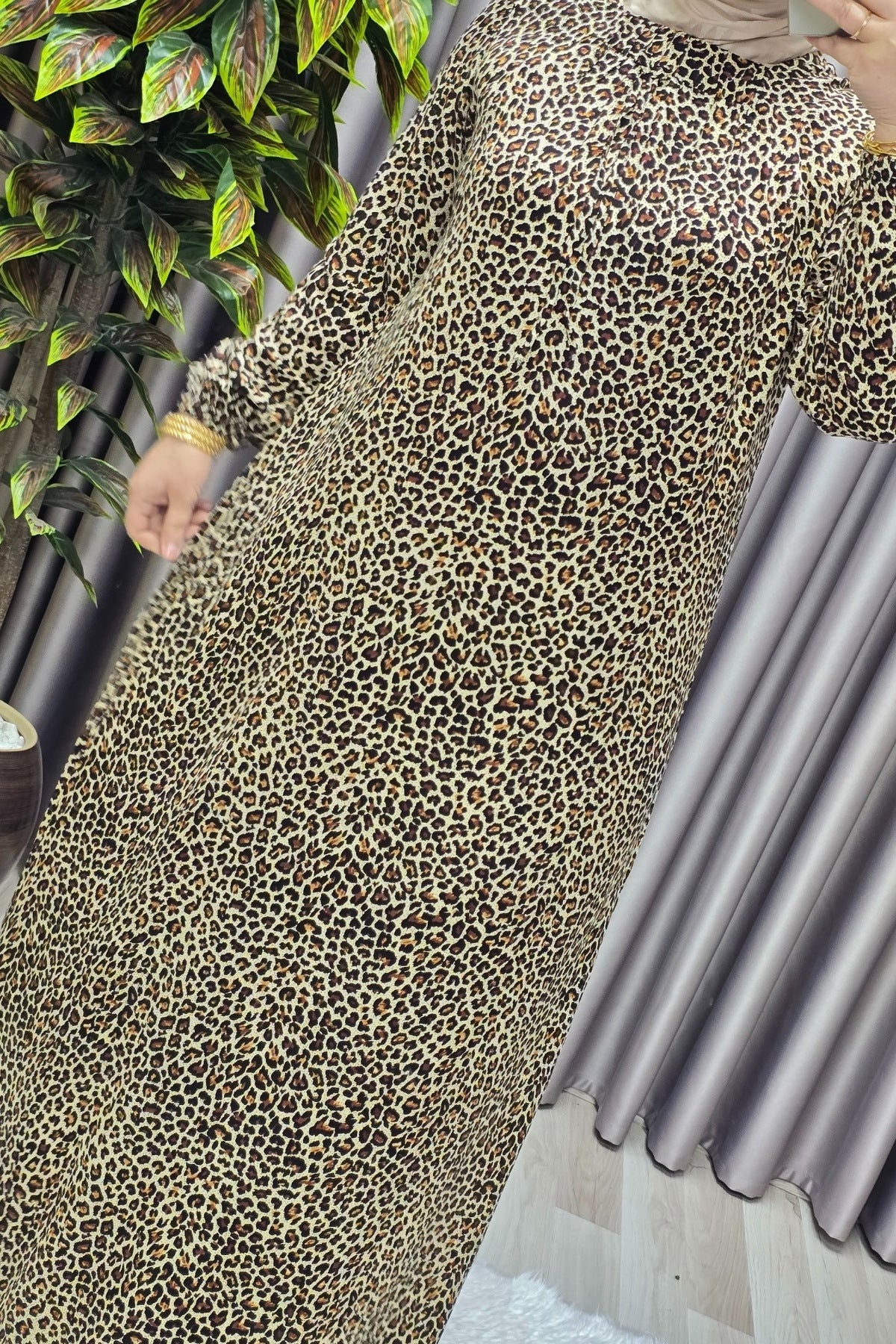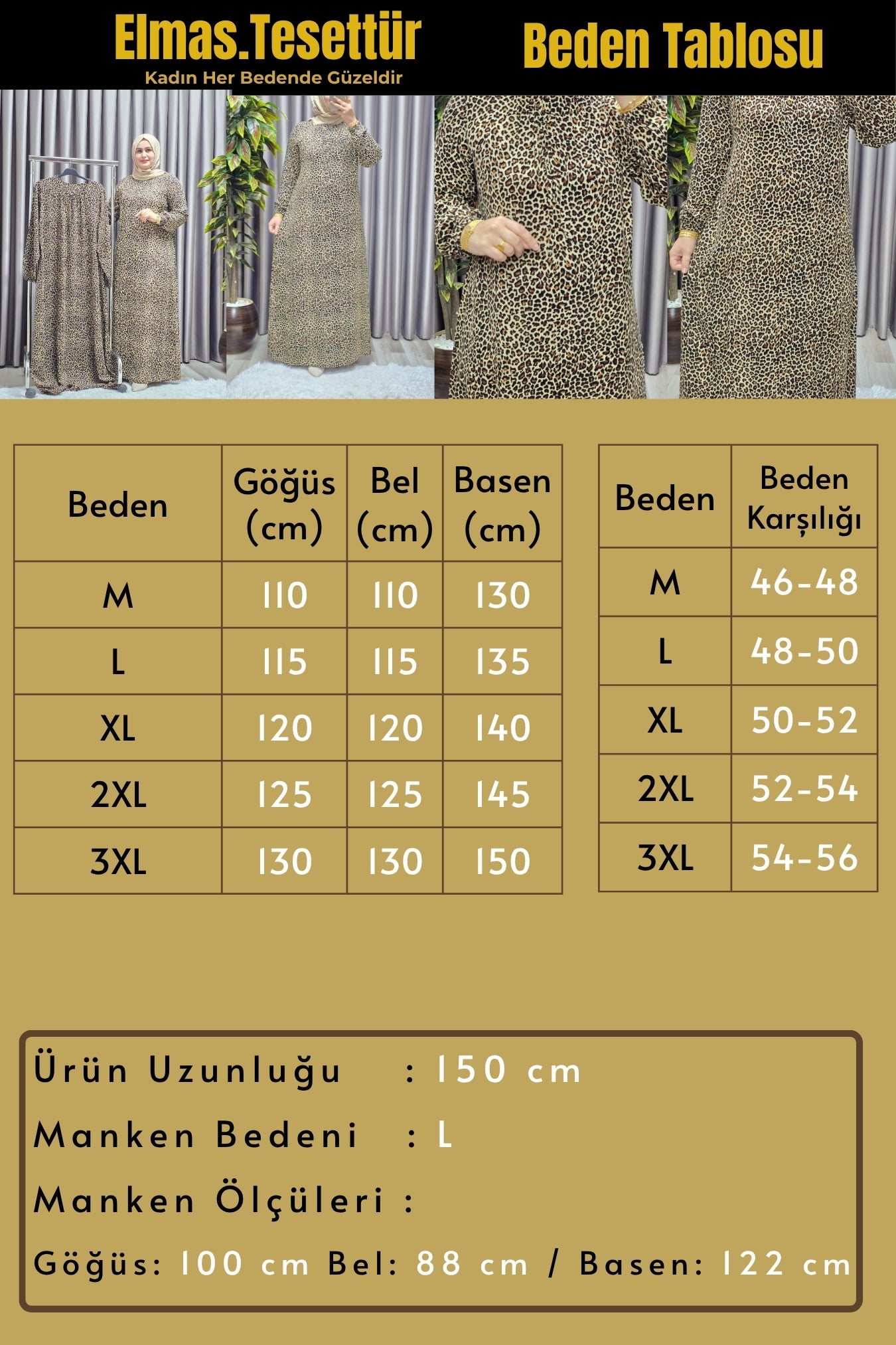 Kadın Tesettür Giyim Büyük Beden Leopar Desen Elbise