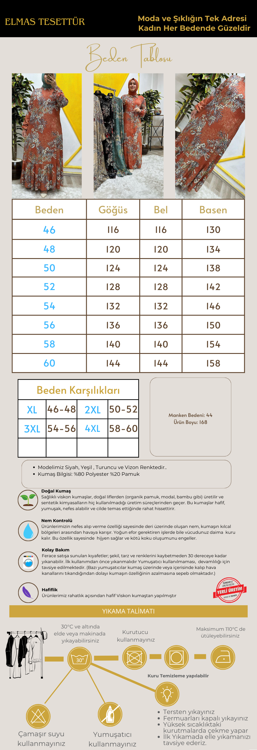 Kadın Tesettür Giyim Büyük Beden Palmiye Fırfırlı Elbise