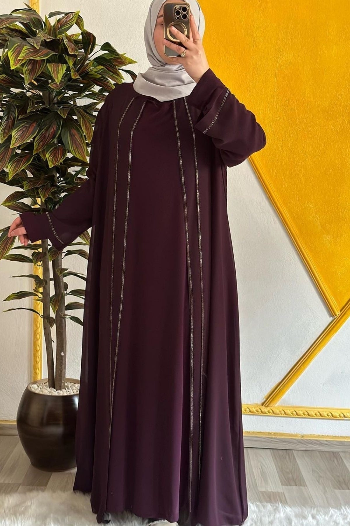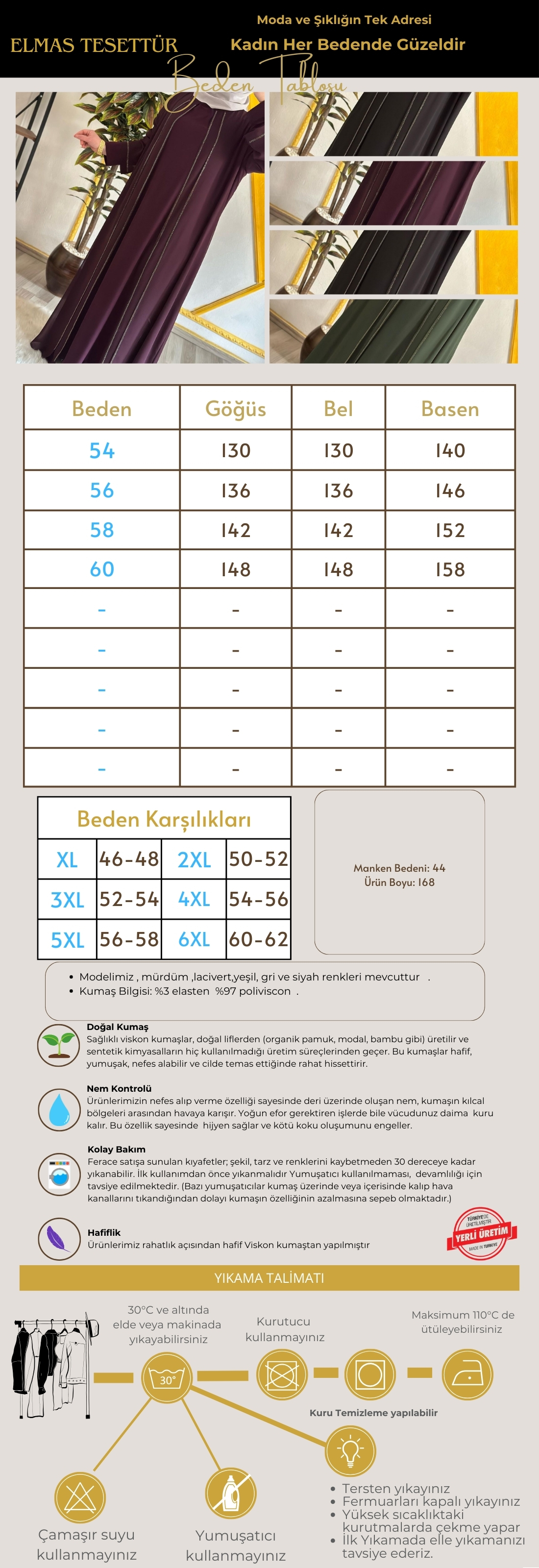 Kadın Tesettür Giyim Büyük Beden Şifon Şerit Taşlı Abiye
