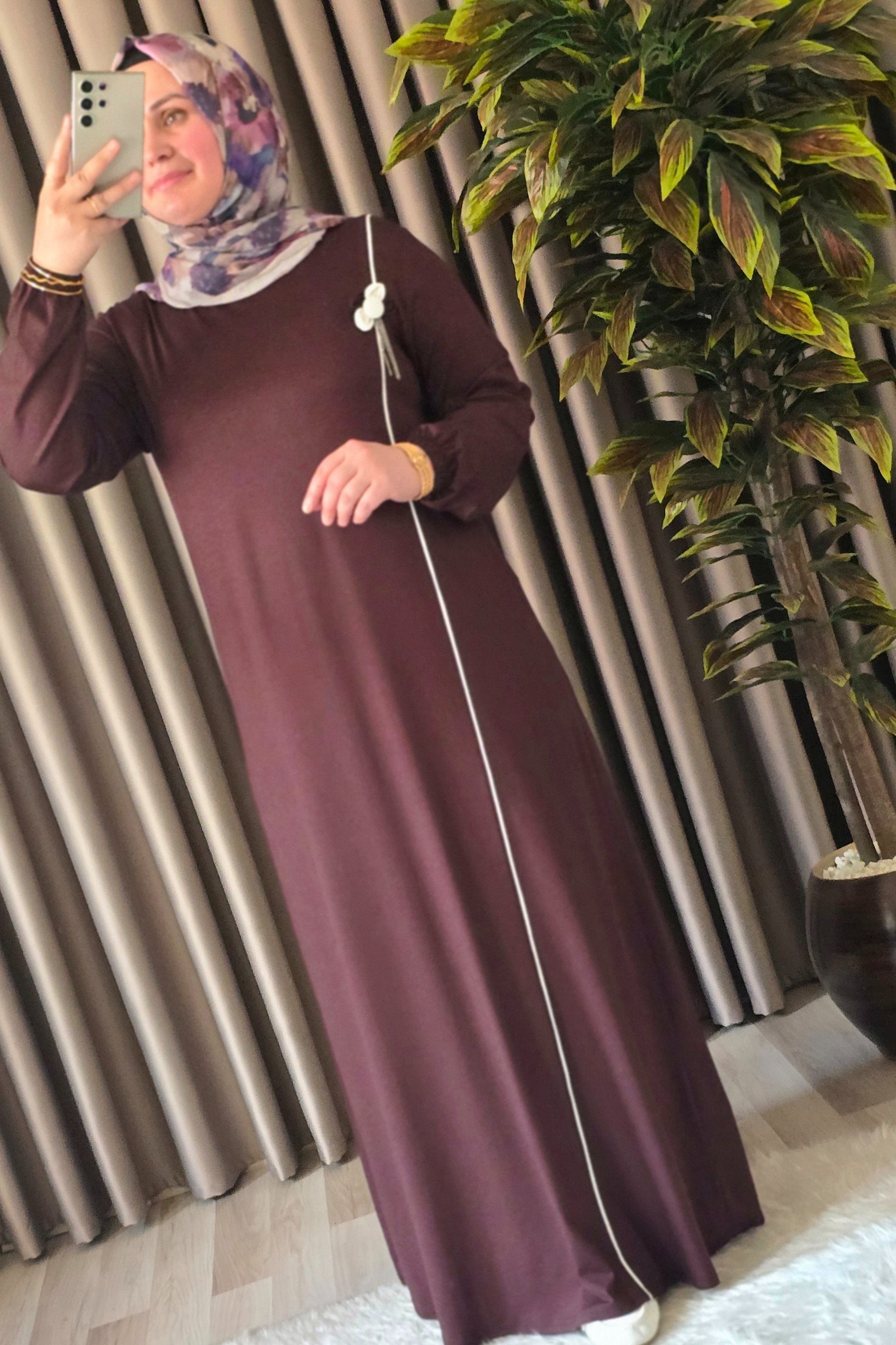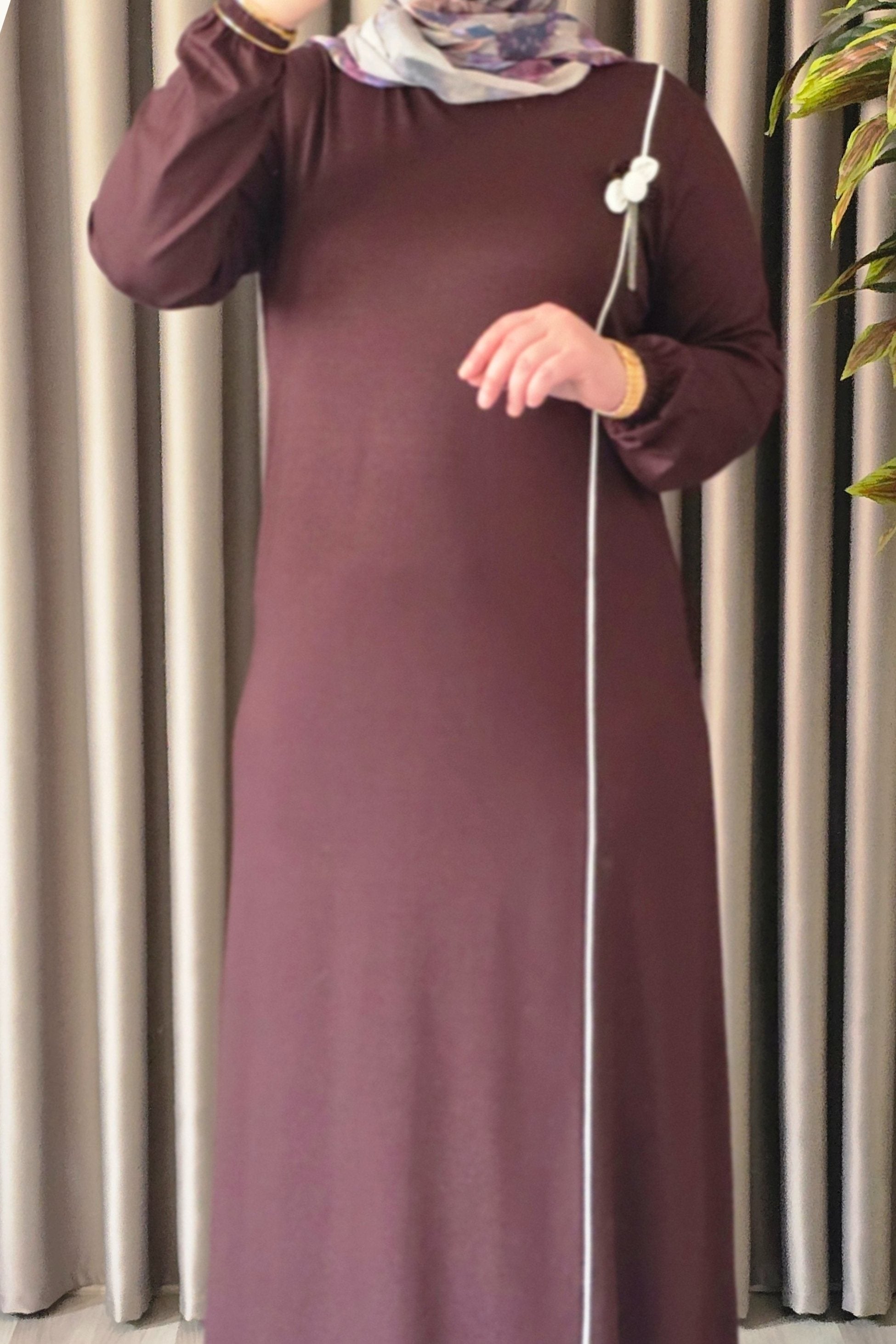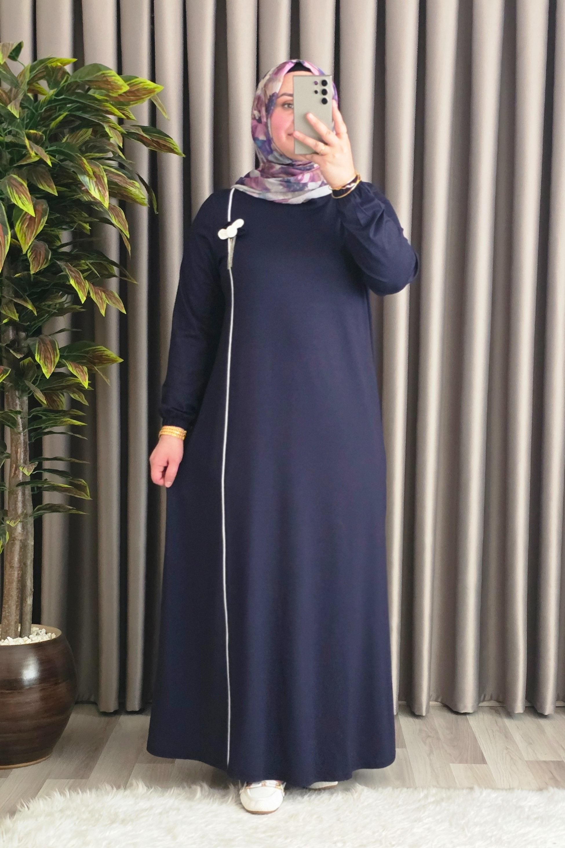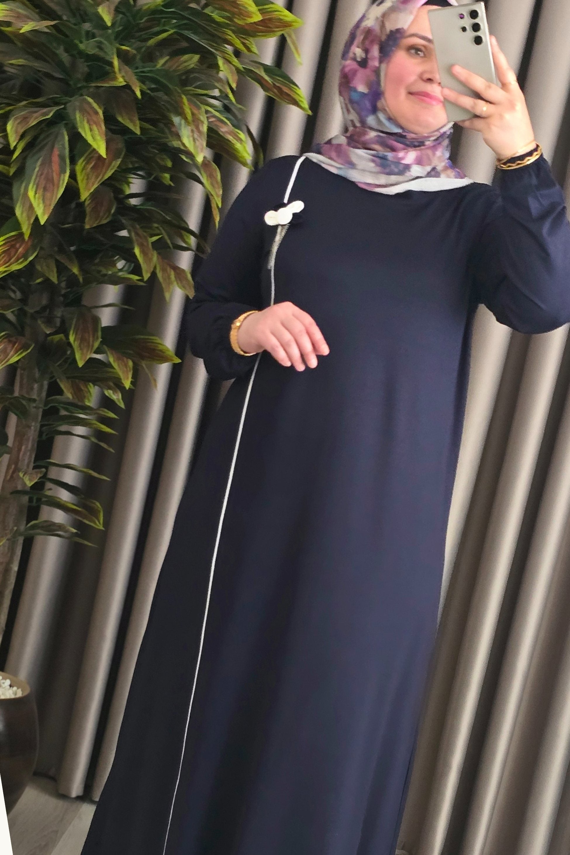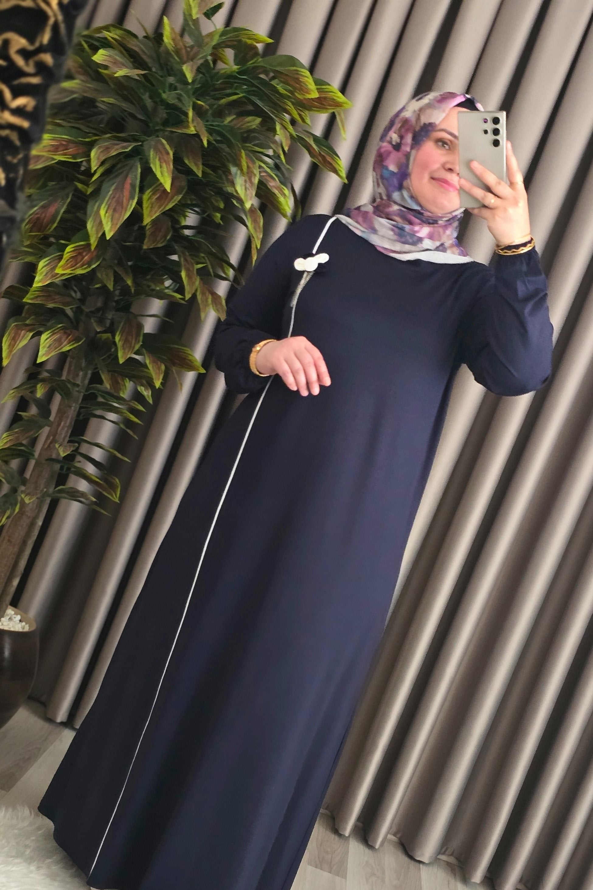 Rahat kalıbı sayesinde gün boyu konfor sunar; vücut hatlarını belli etmeyen dökümlü formu ile tesettür kombinlerinde zarif bir duruş sergiler. Uzun boy elbise formu, asil görünümüyle hem sade hem de şık bir alternatif oluşturur.