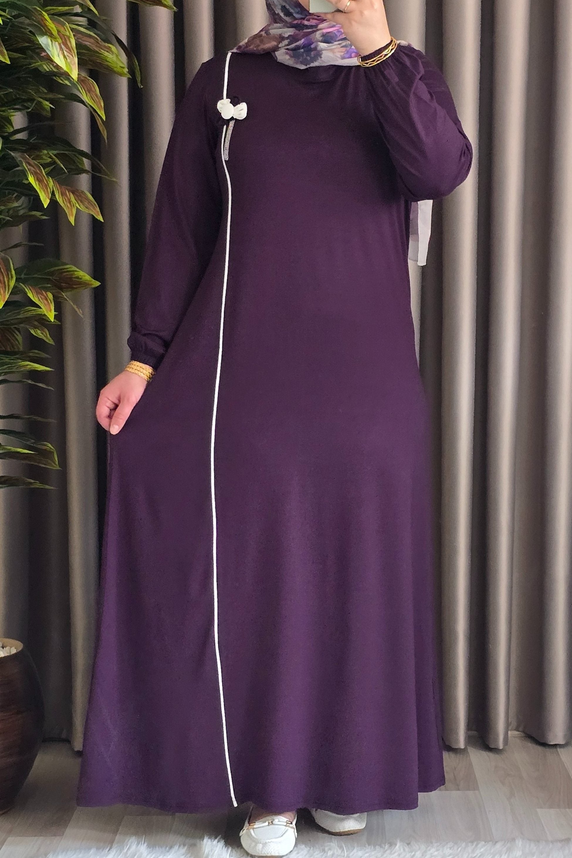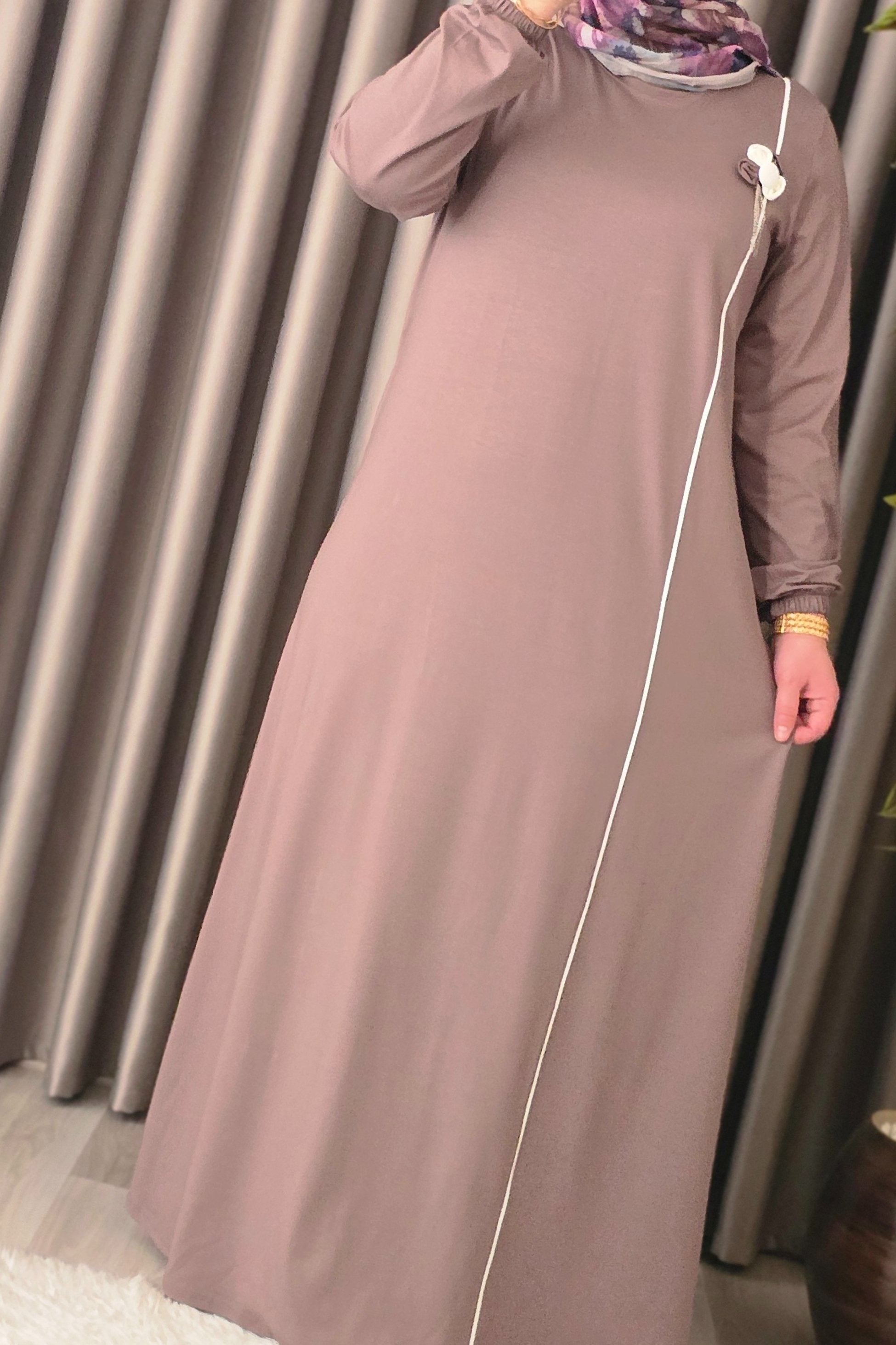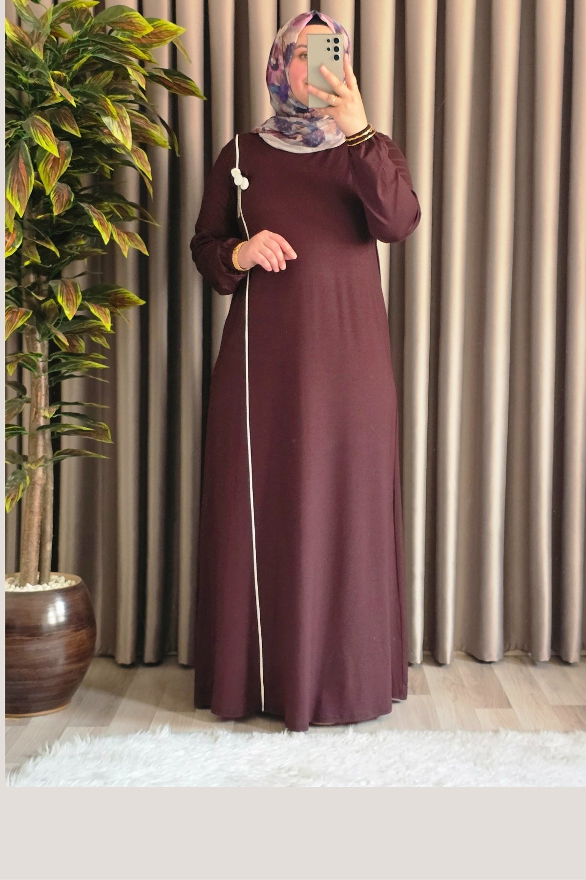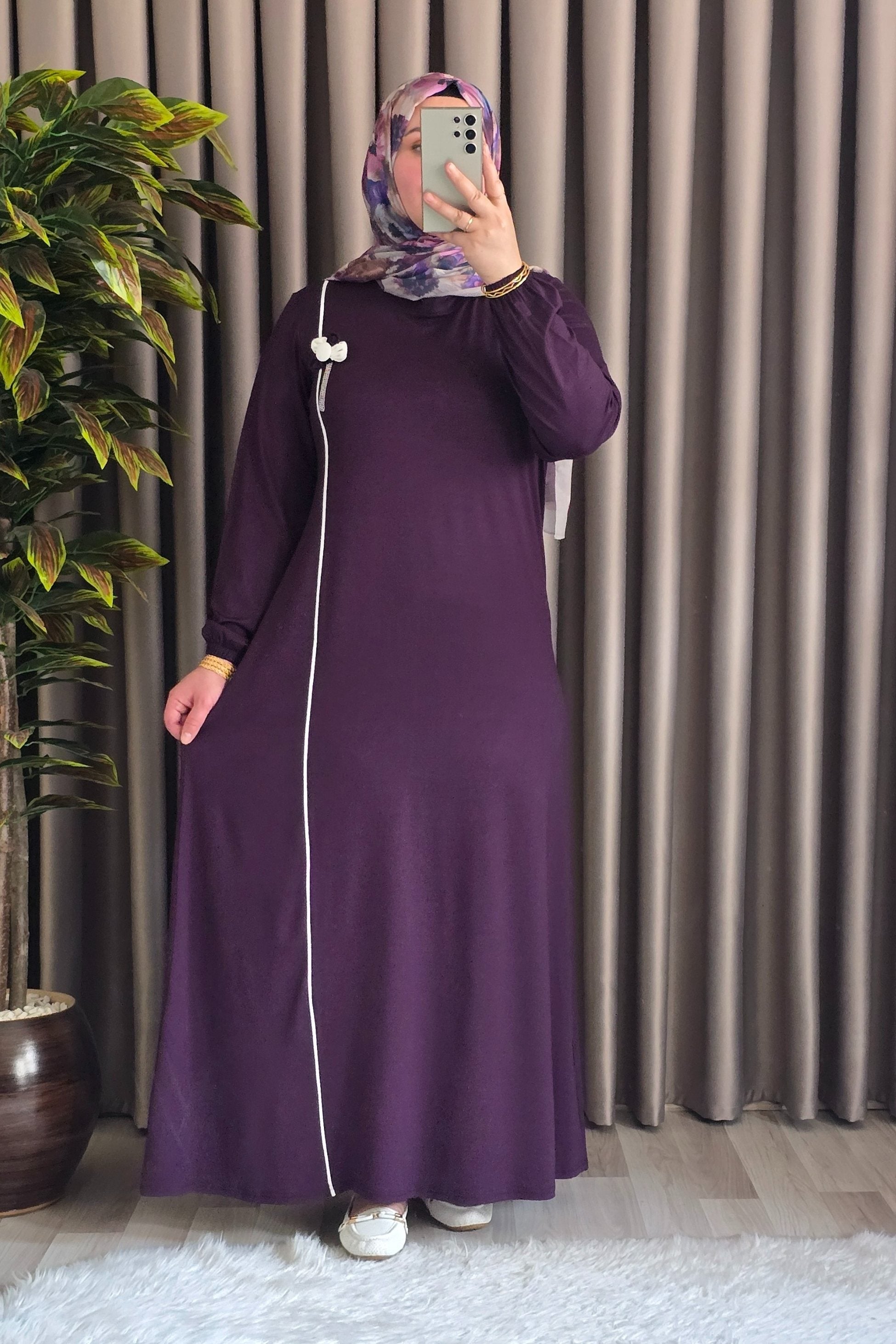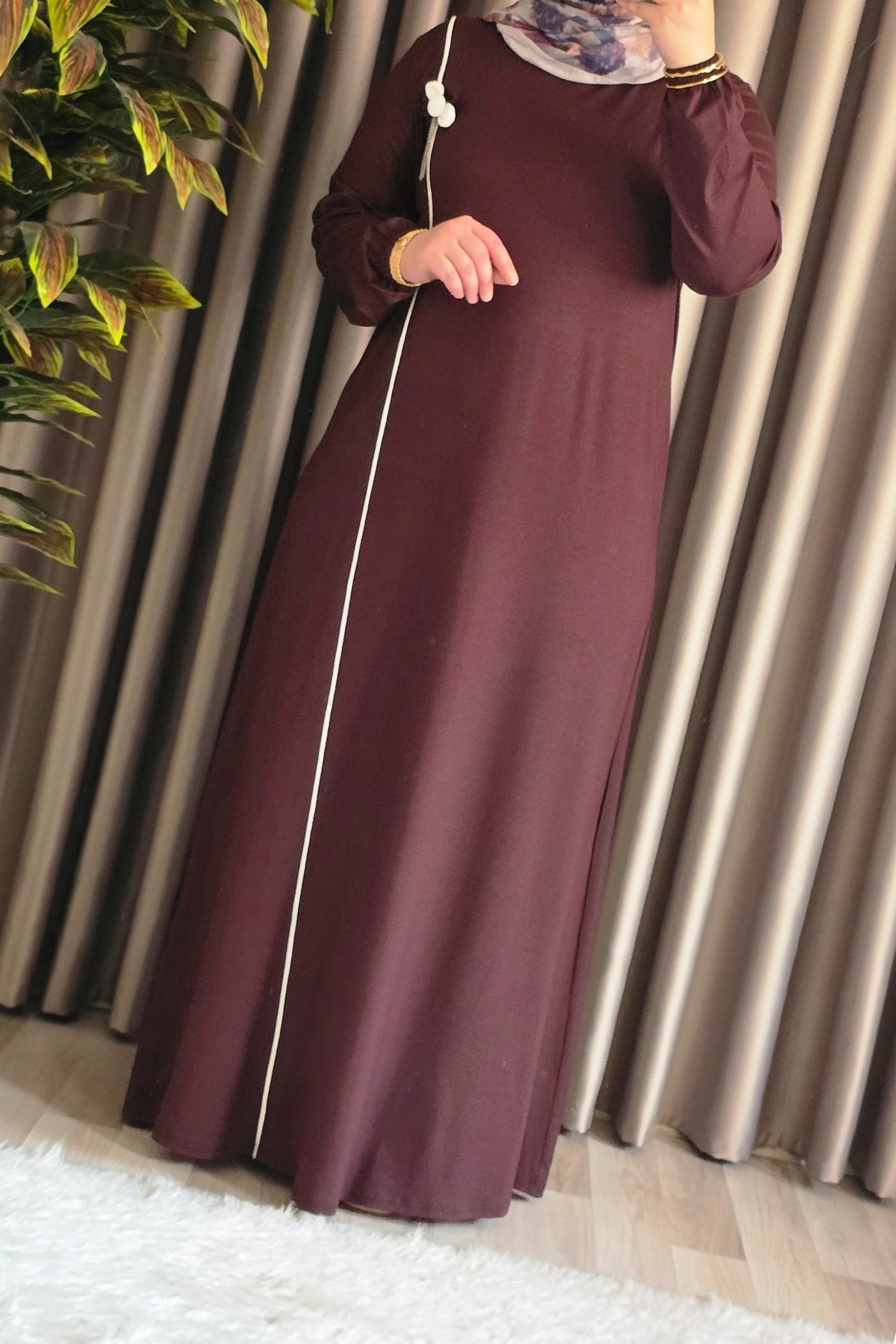 Rahat kalıbı sayesinde gün boyu konfor sunar; vücut hatlarını belli etmeyen dökümlü formu ile tesettür kombinlerinde zarif bir duruş sergiler. Uzun boy elbise formu, asil görünümüyle hem sade hem de şık bir alternatif oluşturur.